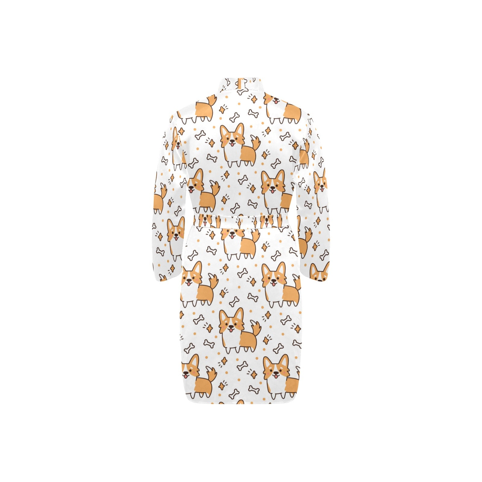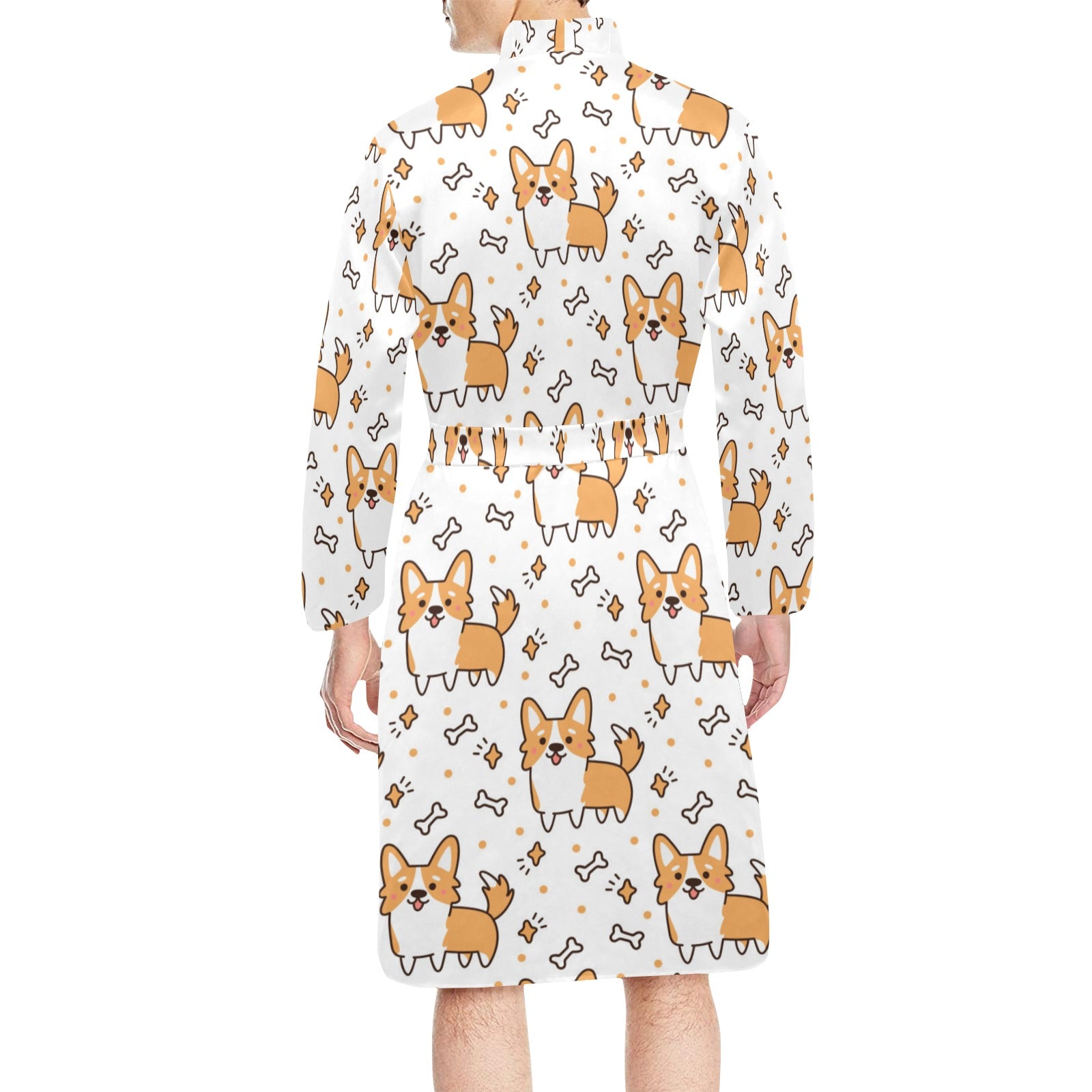 Cute corgi heart star bone pattern Men's Long Sleeve Belted Night Robe