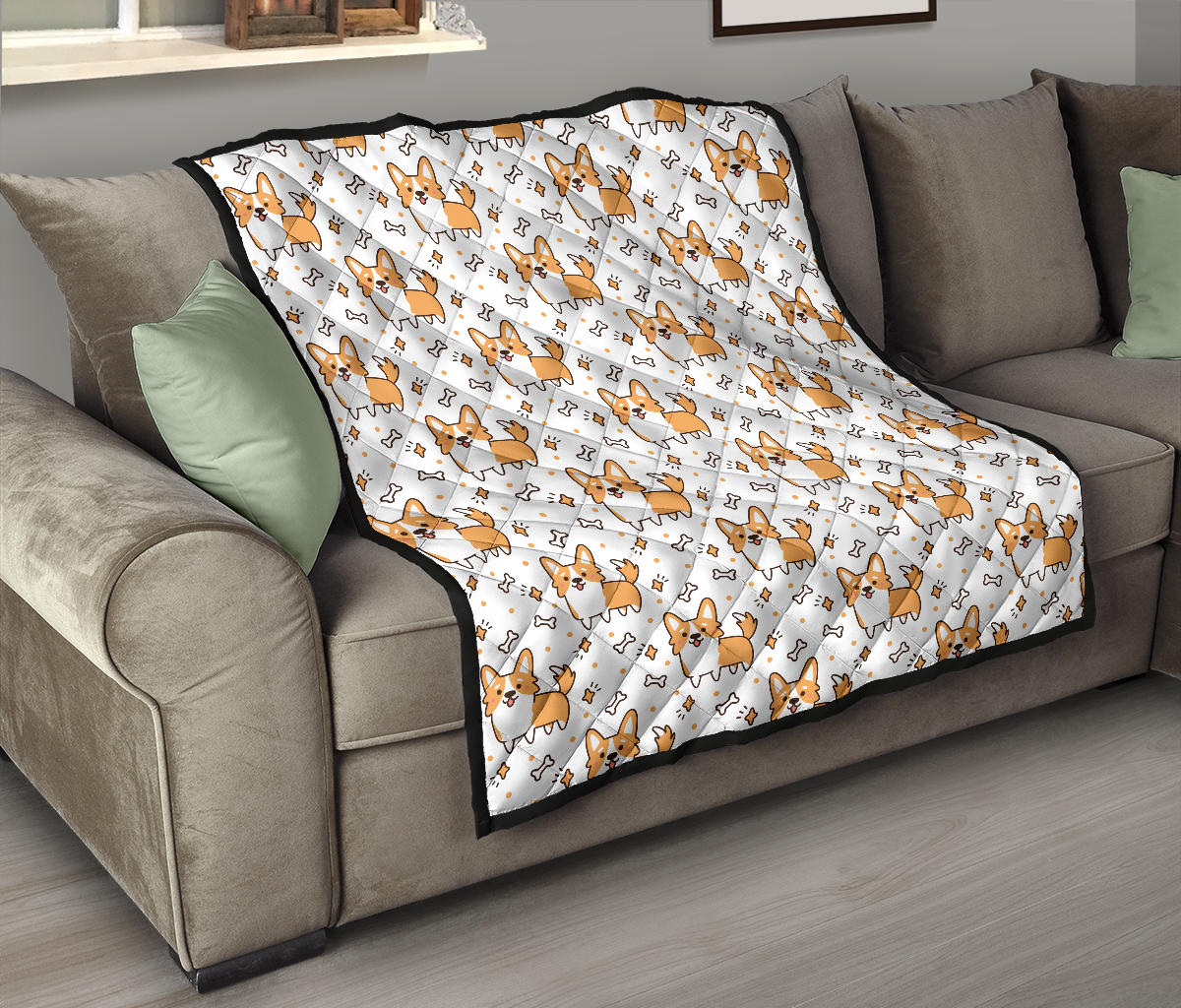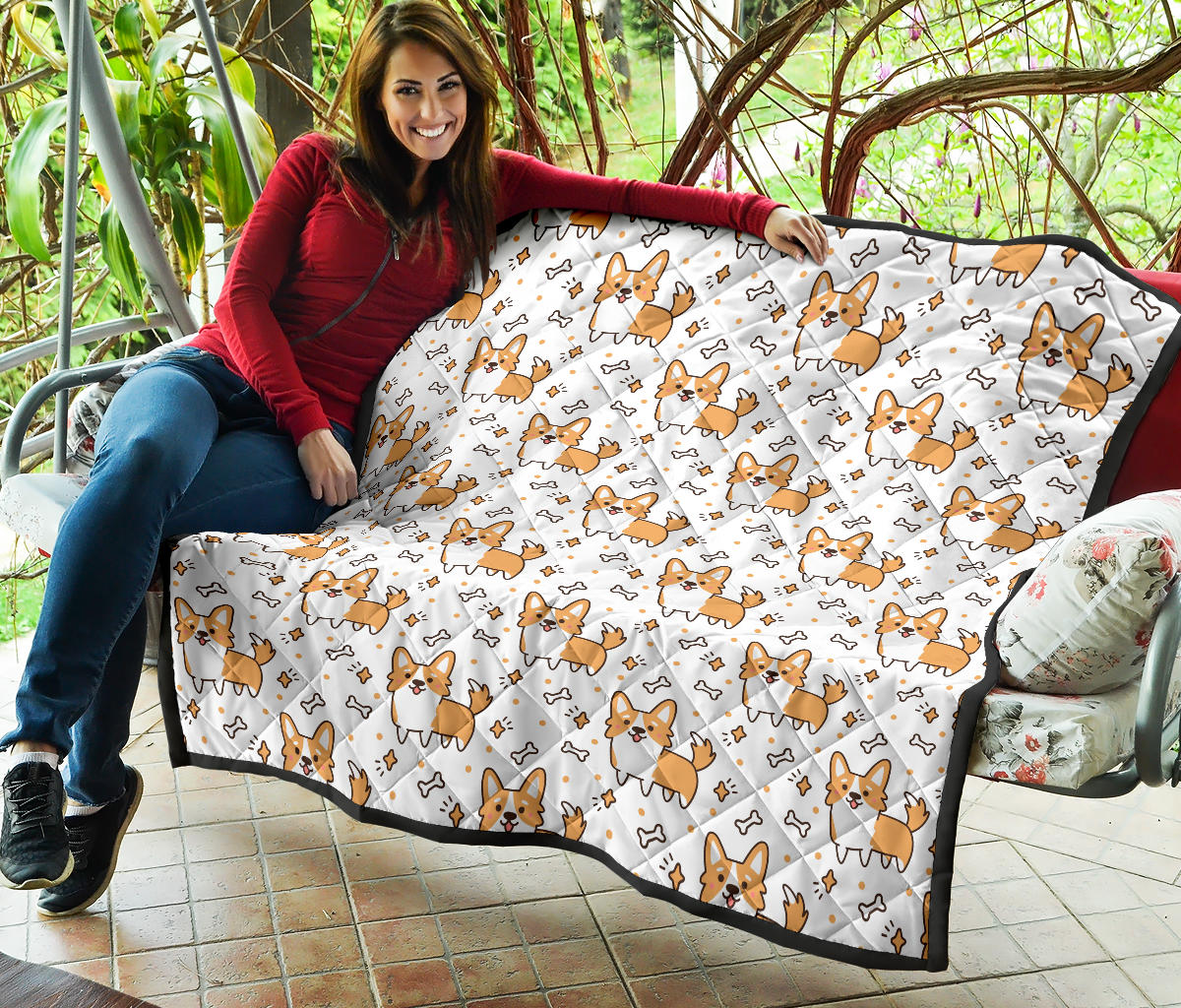 Cute Corgi Heart Star Bone Pattern Premium Quilt is a uniqued design and limited item. It made to order, hand printed, and sewn with love in our factory.