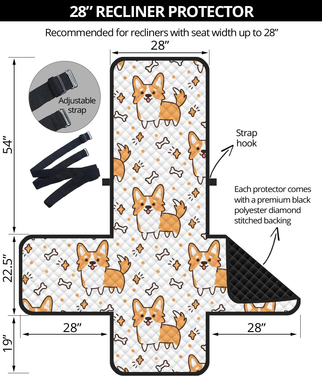Cute corgi heart star bone pattern Recliner Cover Protector
