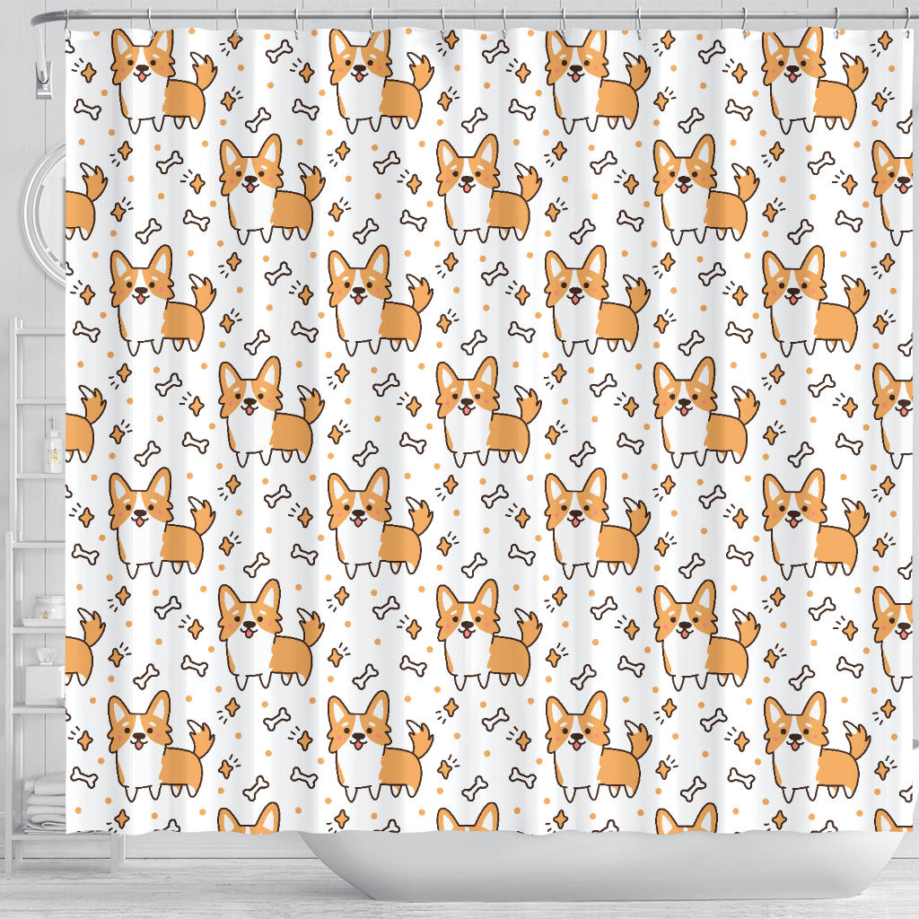 Cute Corgi Heart Star Bone Pattern Shower Curtain Fulfilled In US