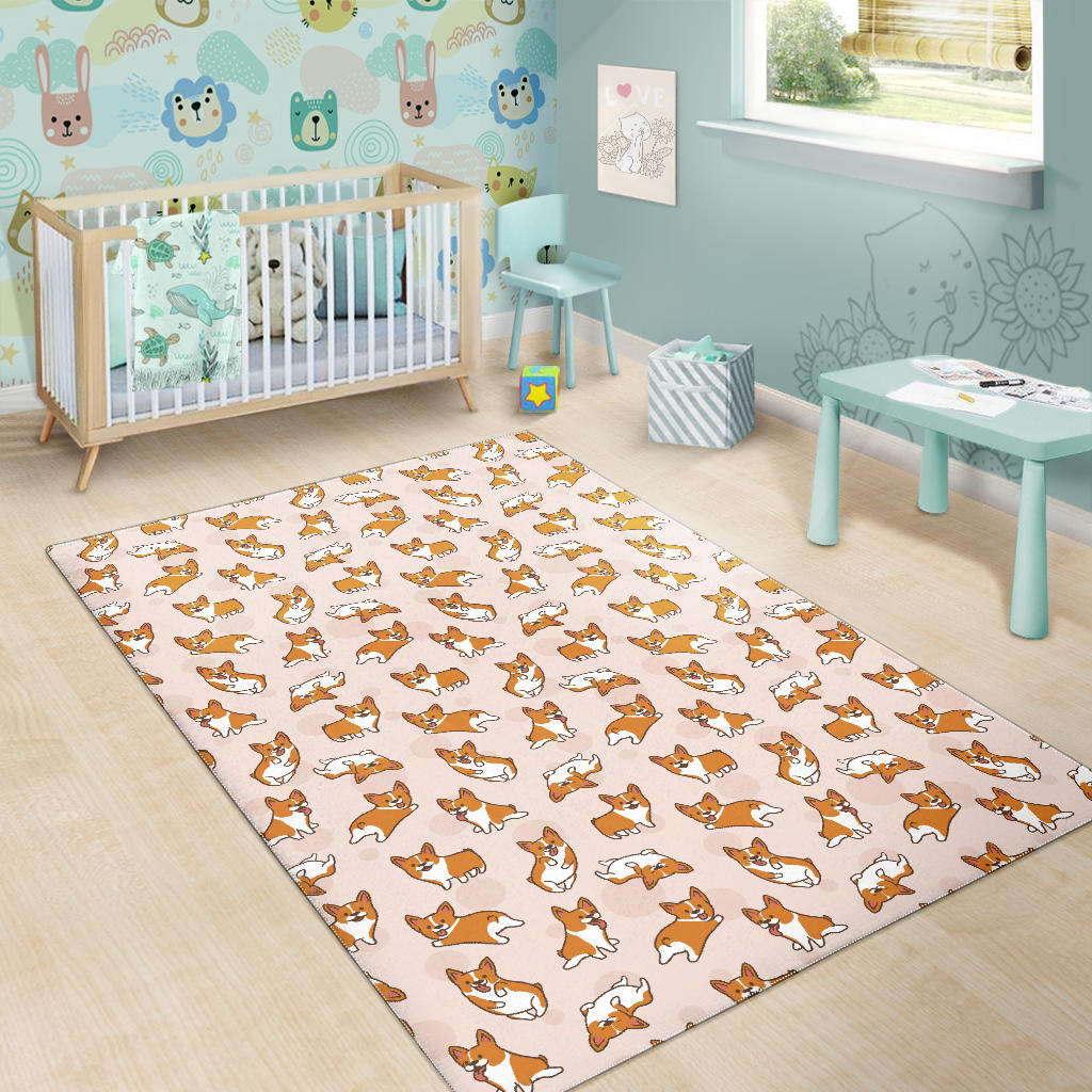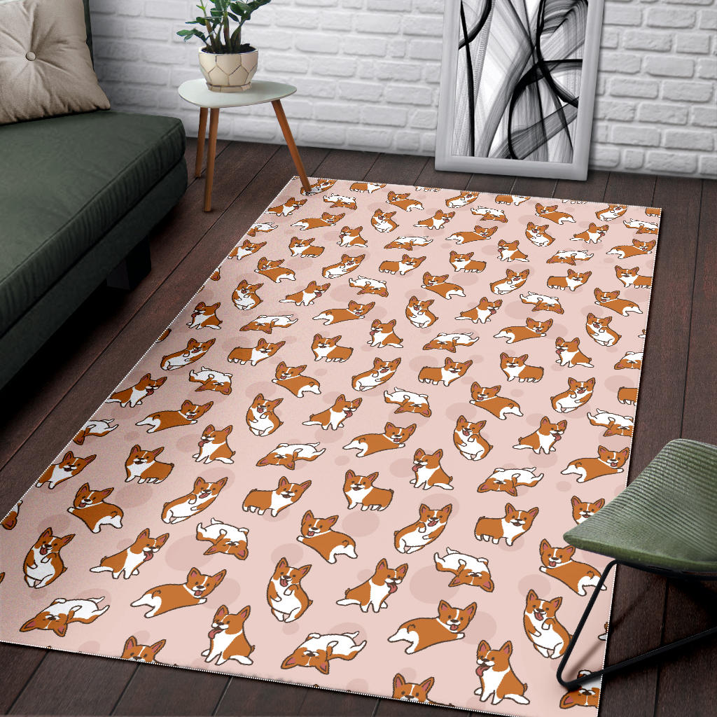 Cute Corgis Pattern pink background Area Rug is a uniqued design and limited item. It made to order, hand printed, and sewn with love in our factory.