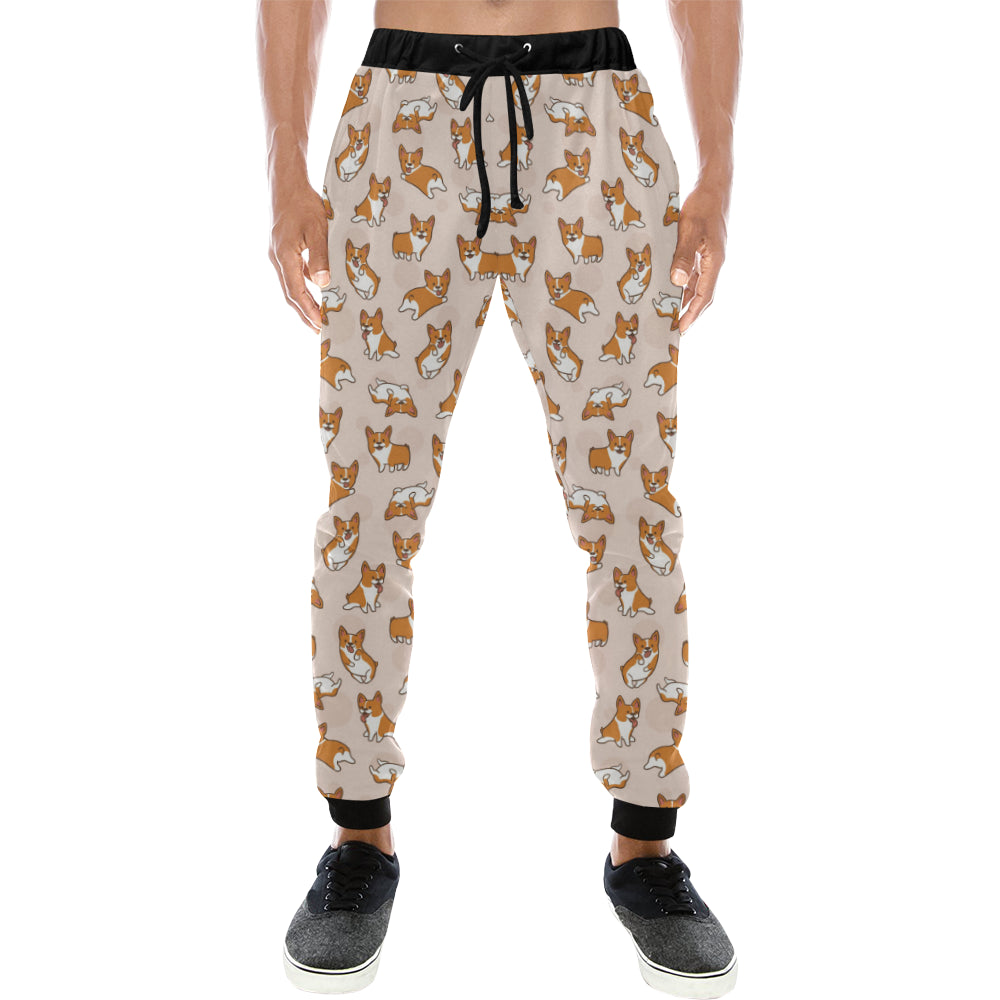 Cute Corgis Pattern pink background Unisex Casual Sweatpants