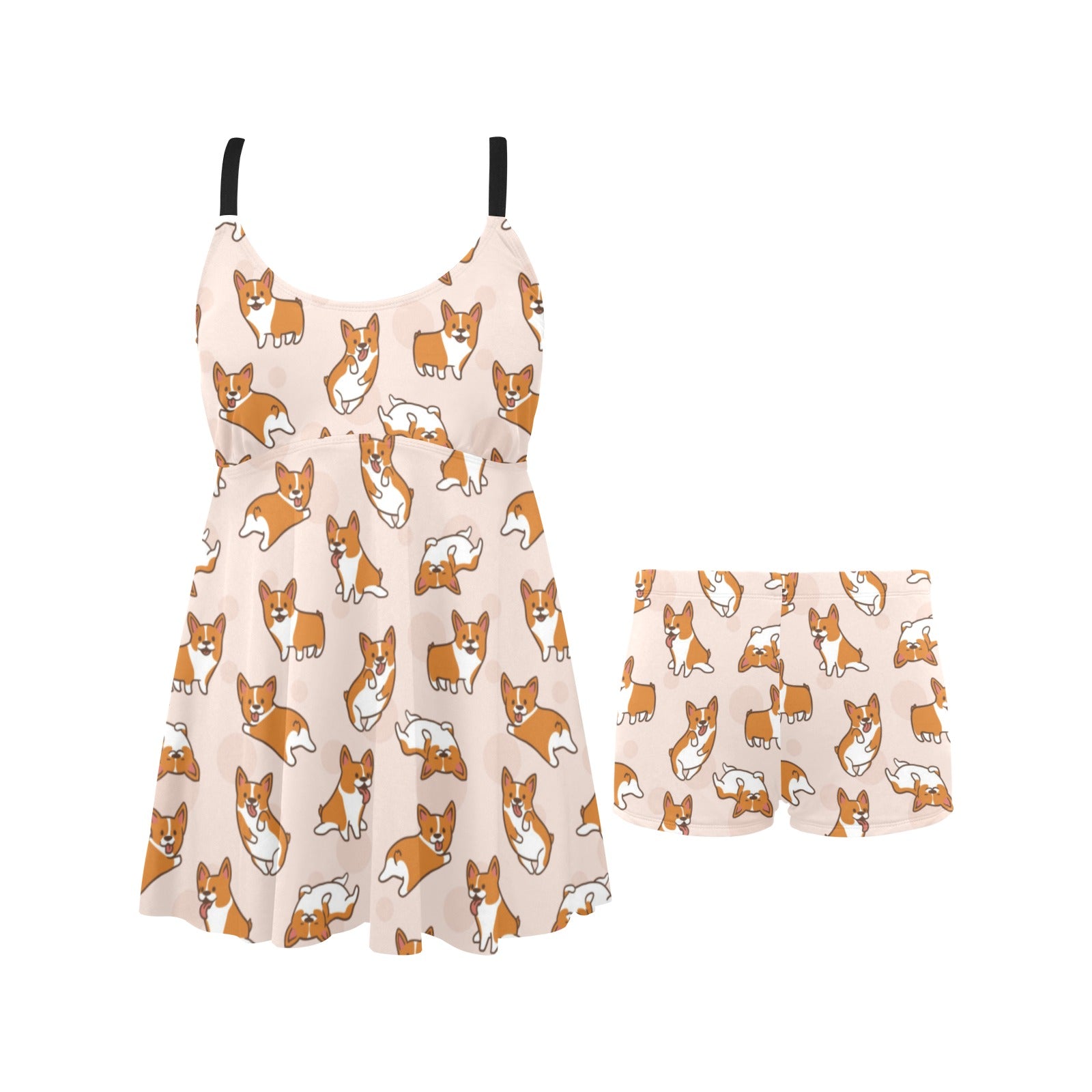 Cute Corgis Pattern pink background Chest Sexy Pleated Two Piece Swim Dress