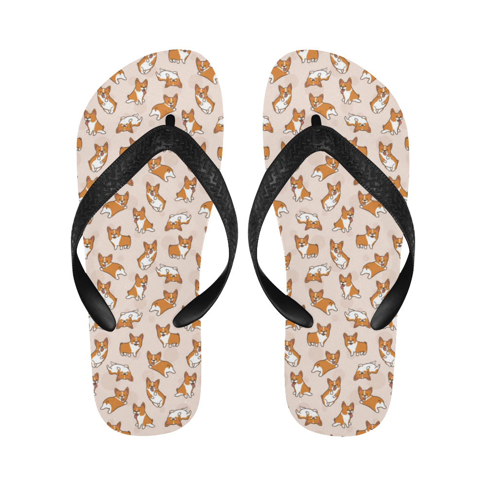 Cute Corgis Pattern pink background Unisex Flip Flops is a uniqued design and limited item. It made to order, hand printed, and sewn with love in our factory.