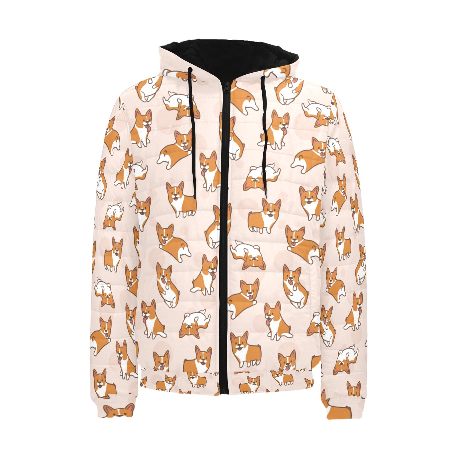 Cute Corgis Pattern pink background Men's Padded Hooded Jacket