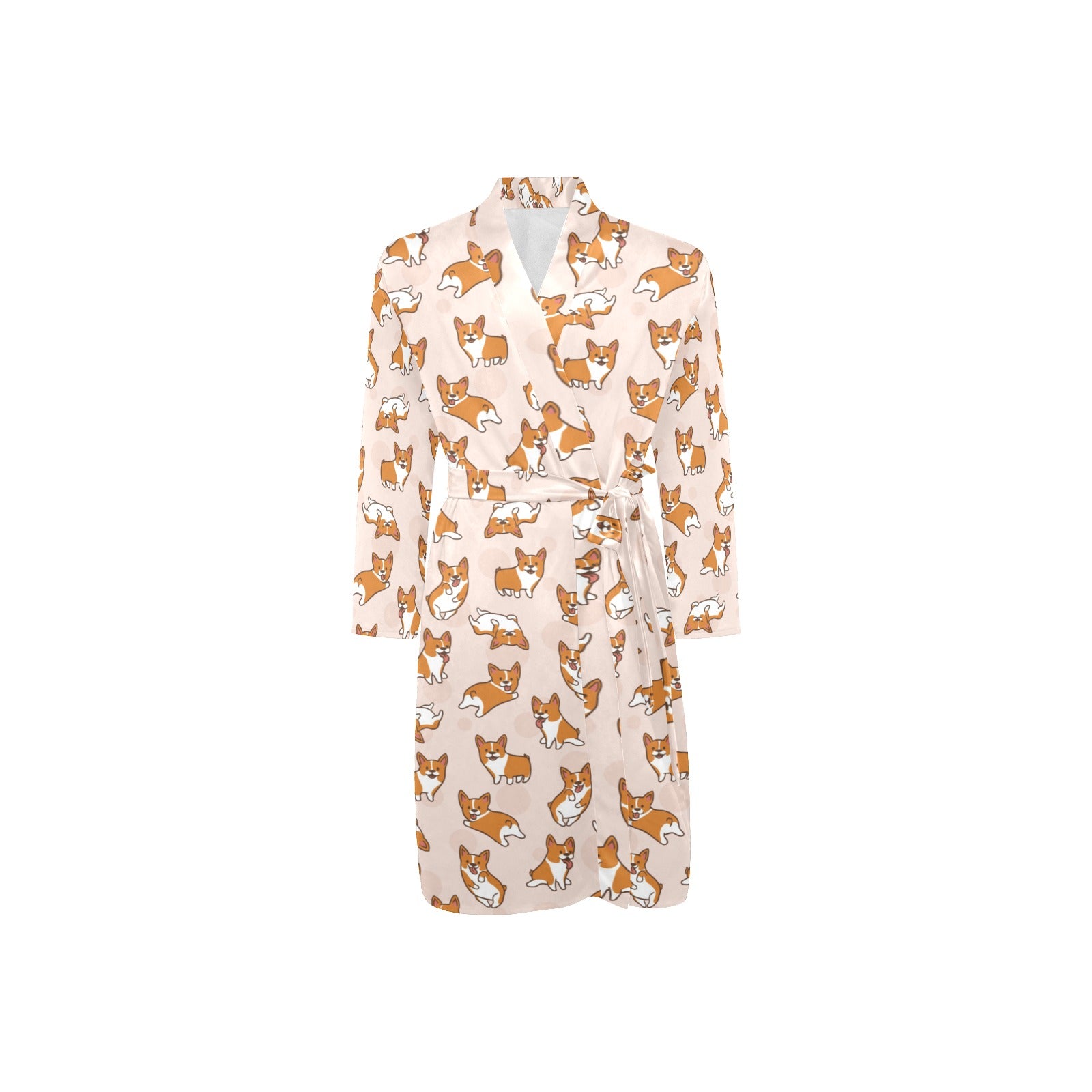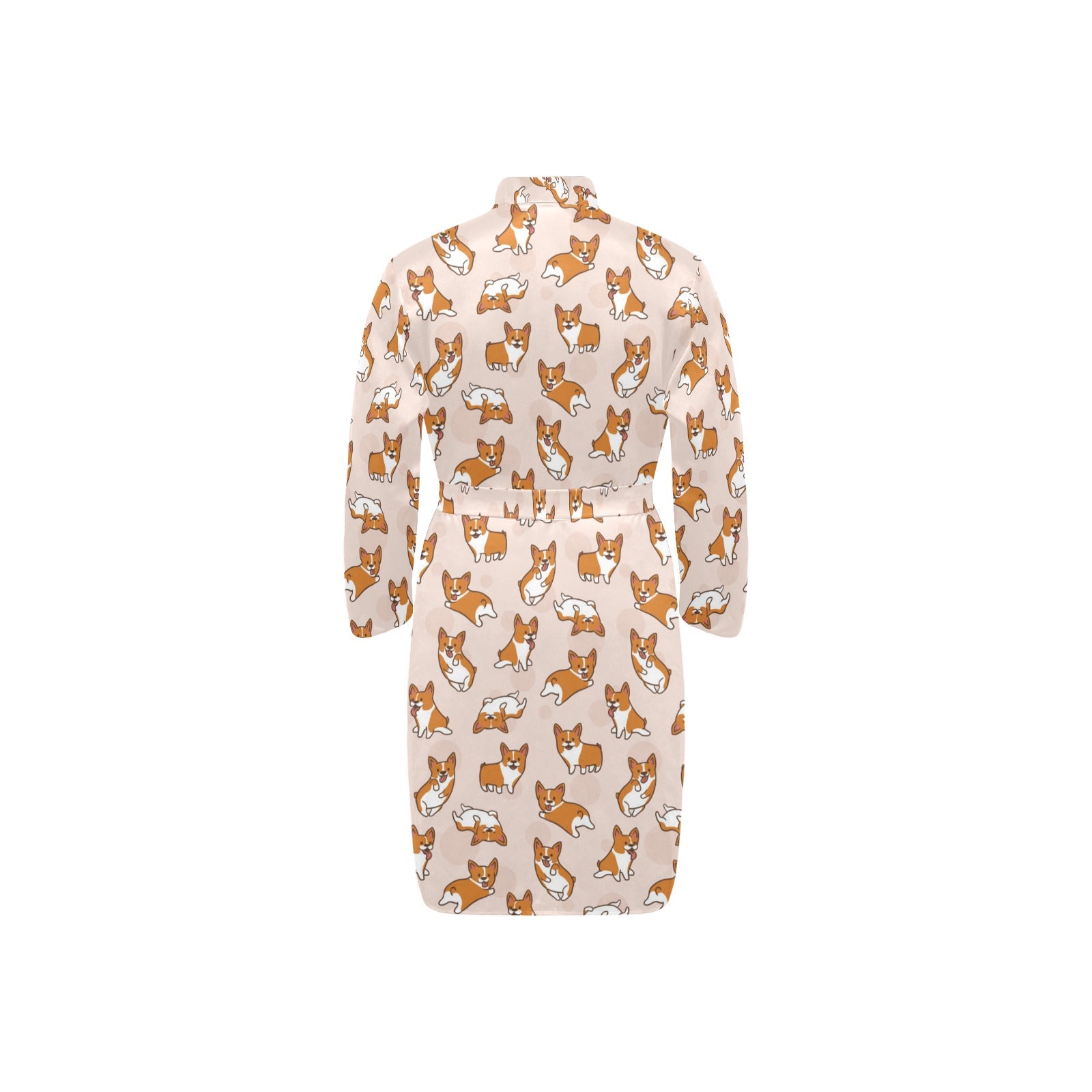 Cute Corgis Pattern pink background Men's Long Sleeve Belted Night Robe