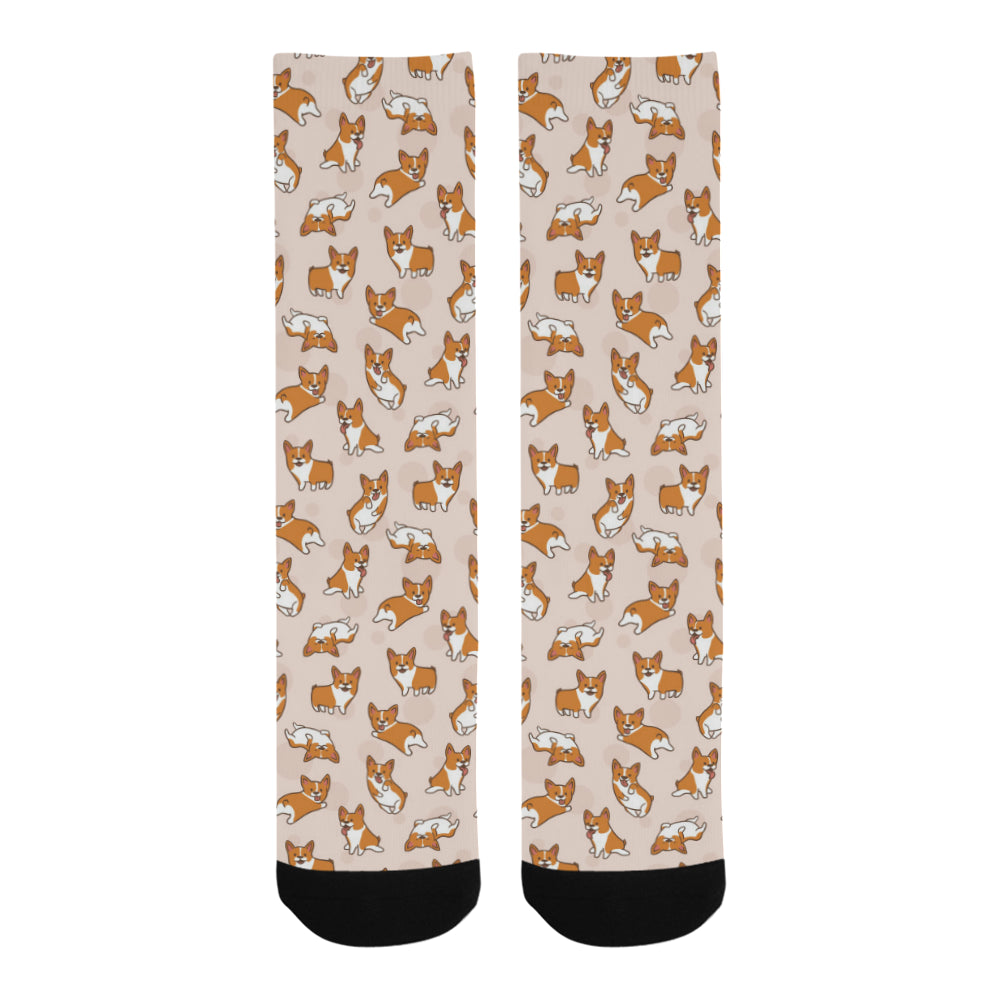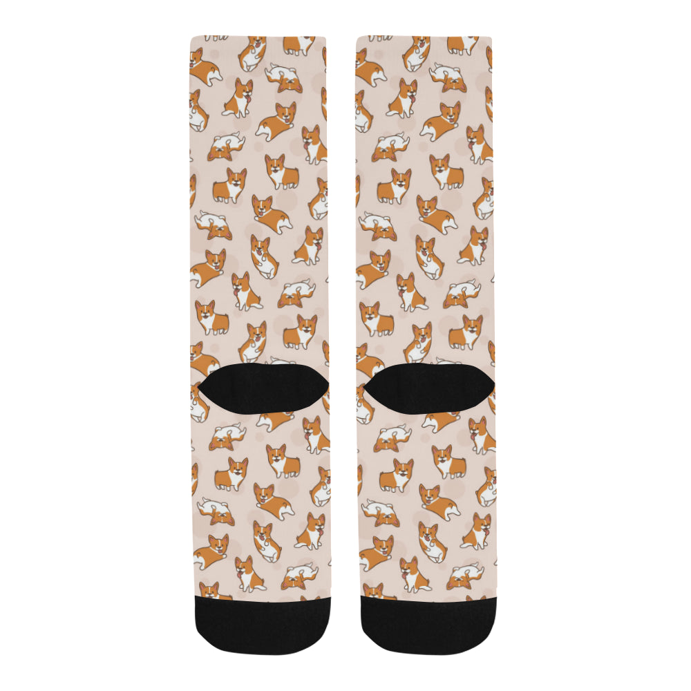 Cute Corgis Pattern pink background Crew Socks are uniqued design and limited item. It made to order, hand printed, and sewn with love in our factory.