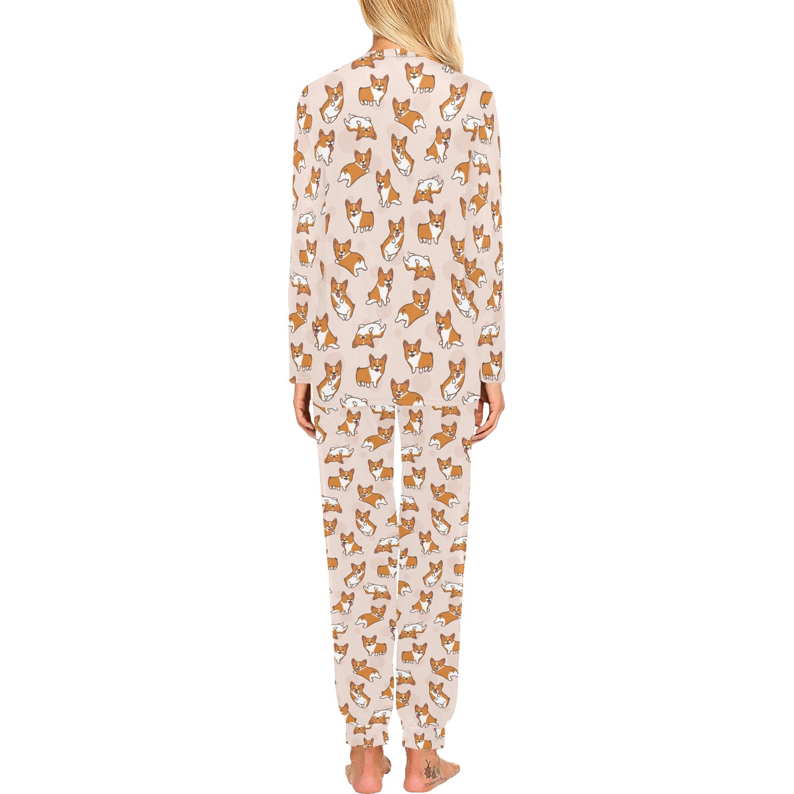 Cute Corgis Pattern pink background Women's All Over Print Pajama Set