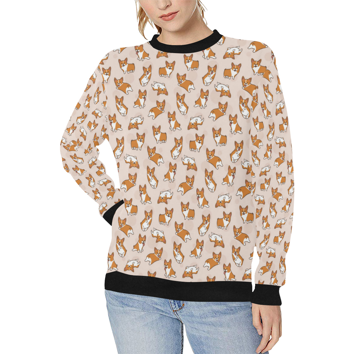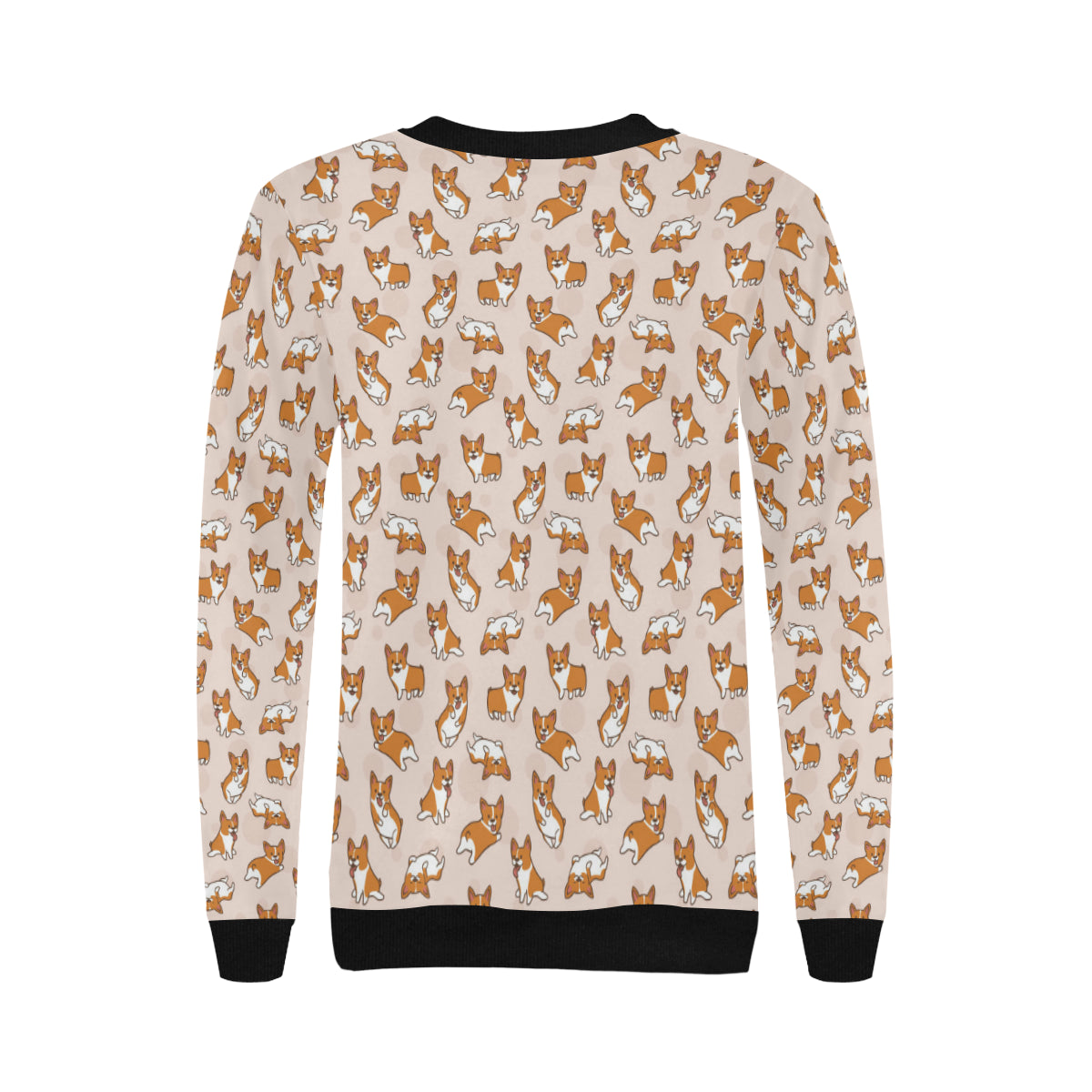 Cute Corgis Pattern pink background Women's Crew Neck Sweatshirt