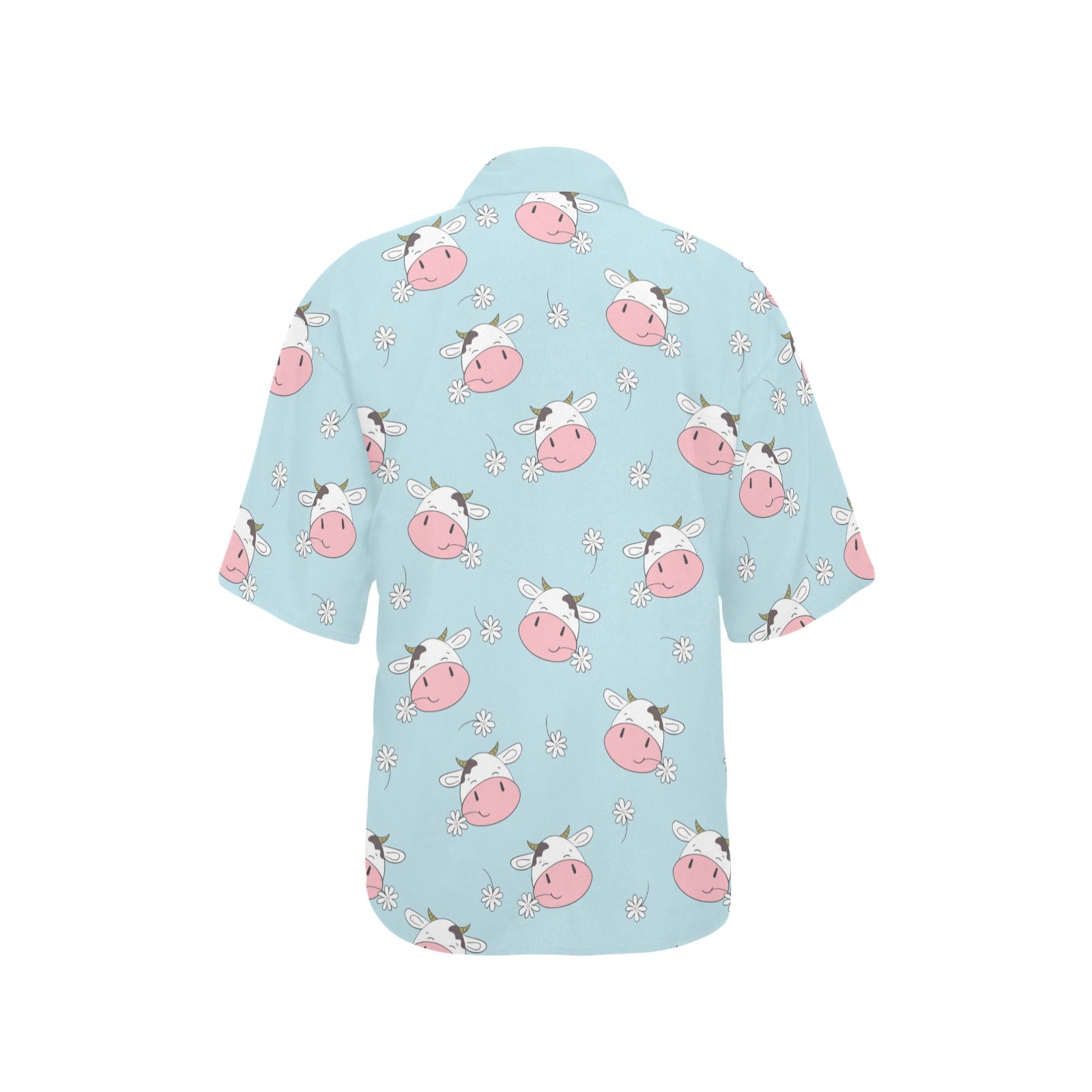 Cute cow flower pattern Women's All Over Print Hawaiian Shirt