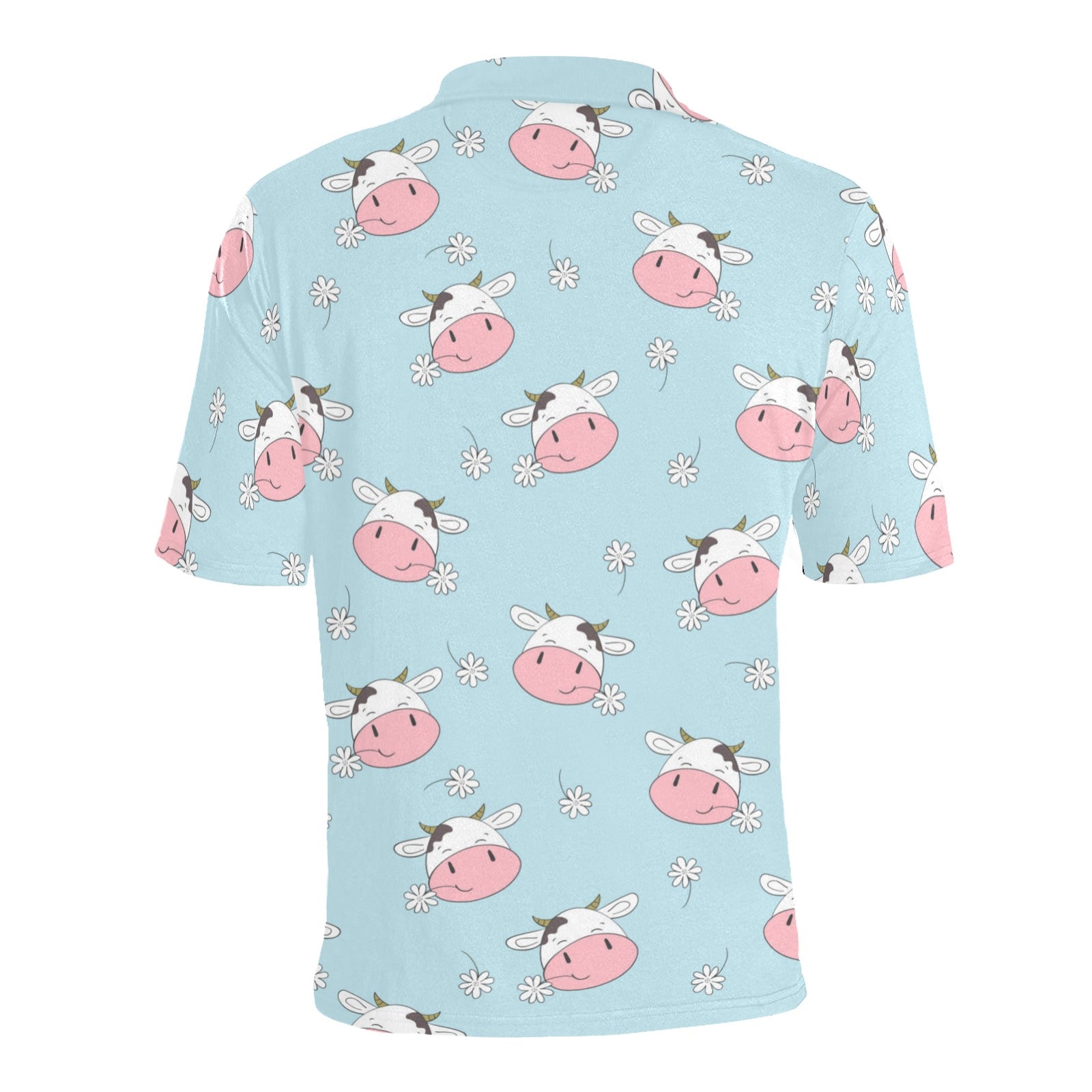 Cute cow flower pattern Men's All Over Print Polo Shirt