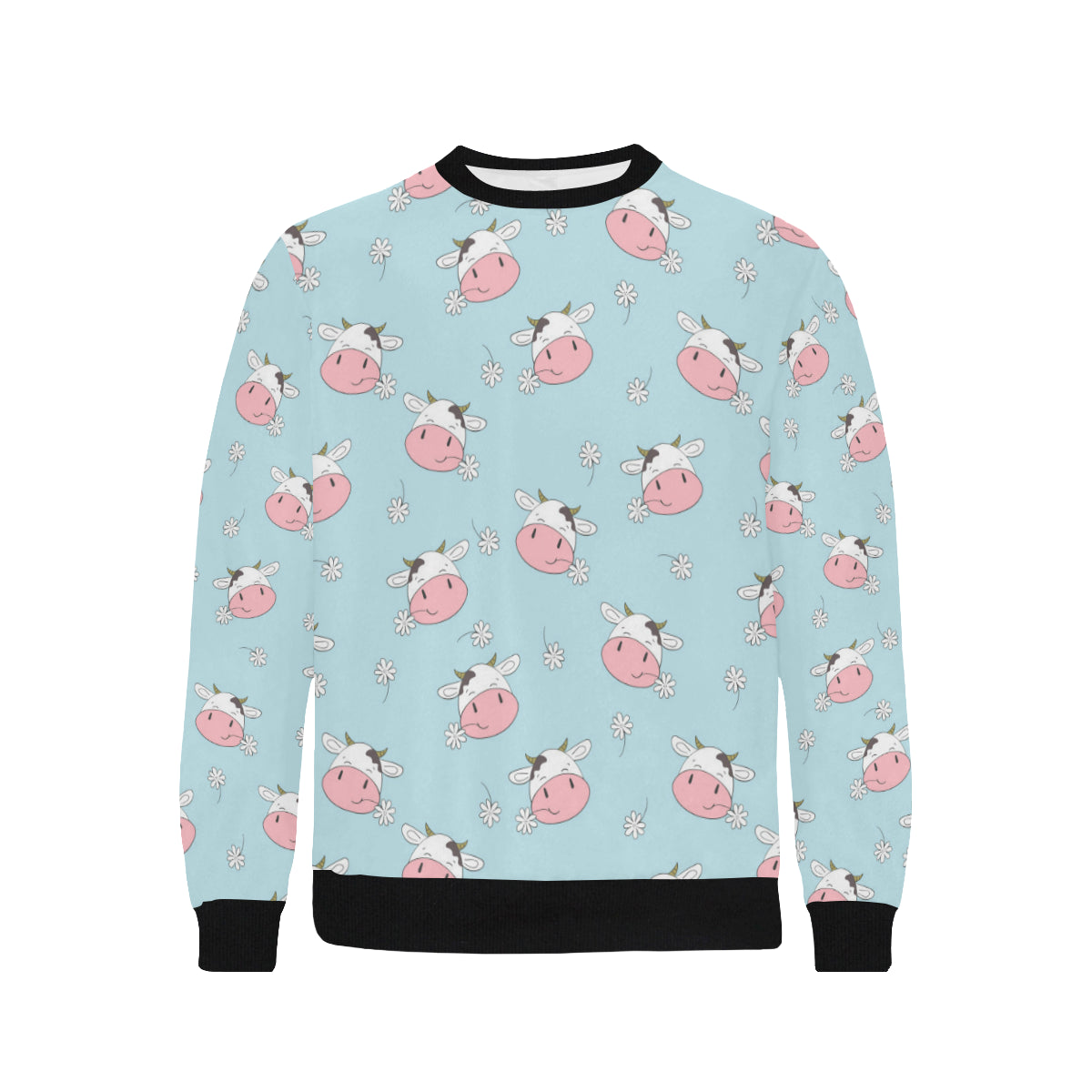 Cute cow flower pattern Men's Crew Neck Sweatshirt
