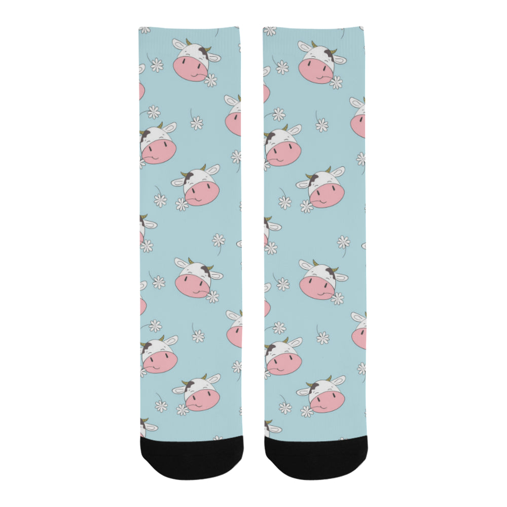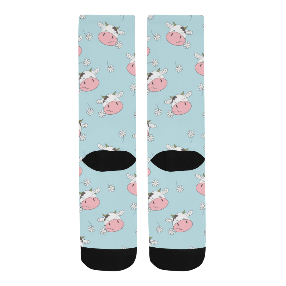 Cute cow flower pattern Crew Socks are uniqued design and limited item. It made to order, hand printed, and sewn with love in our factory.