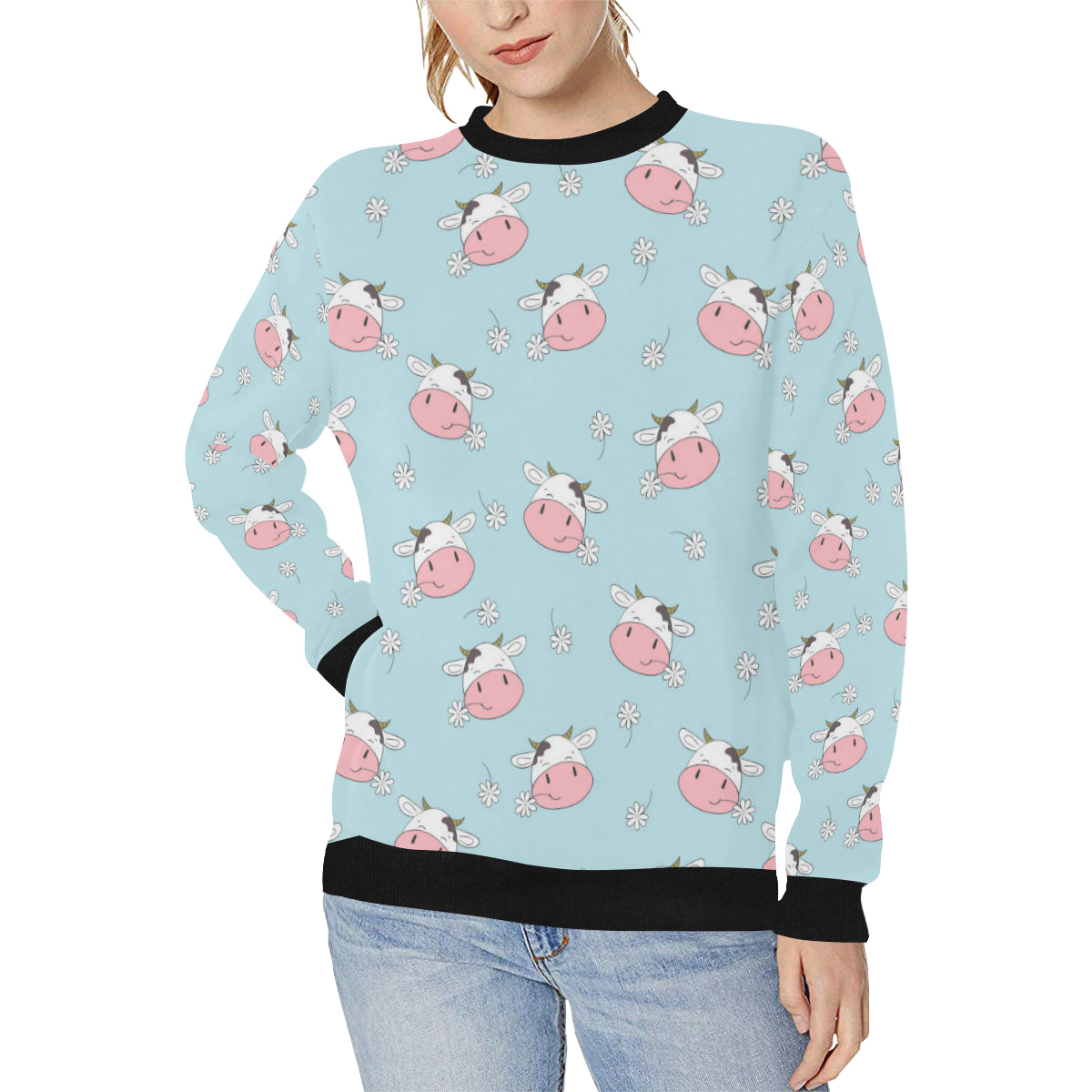 Cute cow flower pattern Women's Crew Neck Sweatshirt