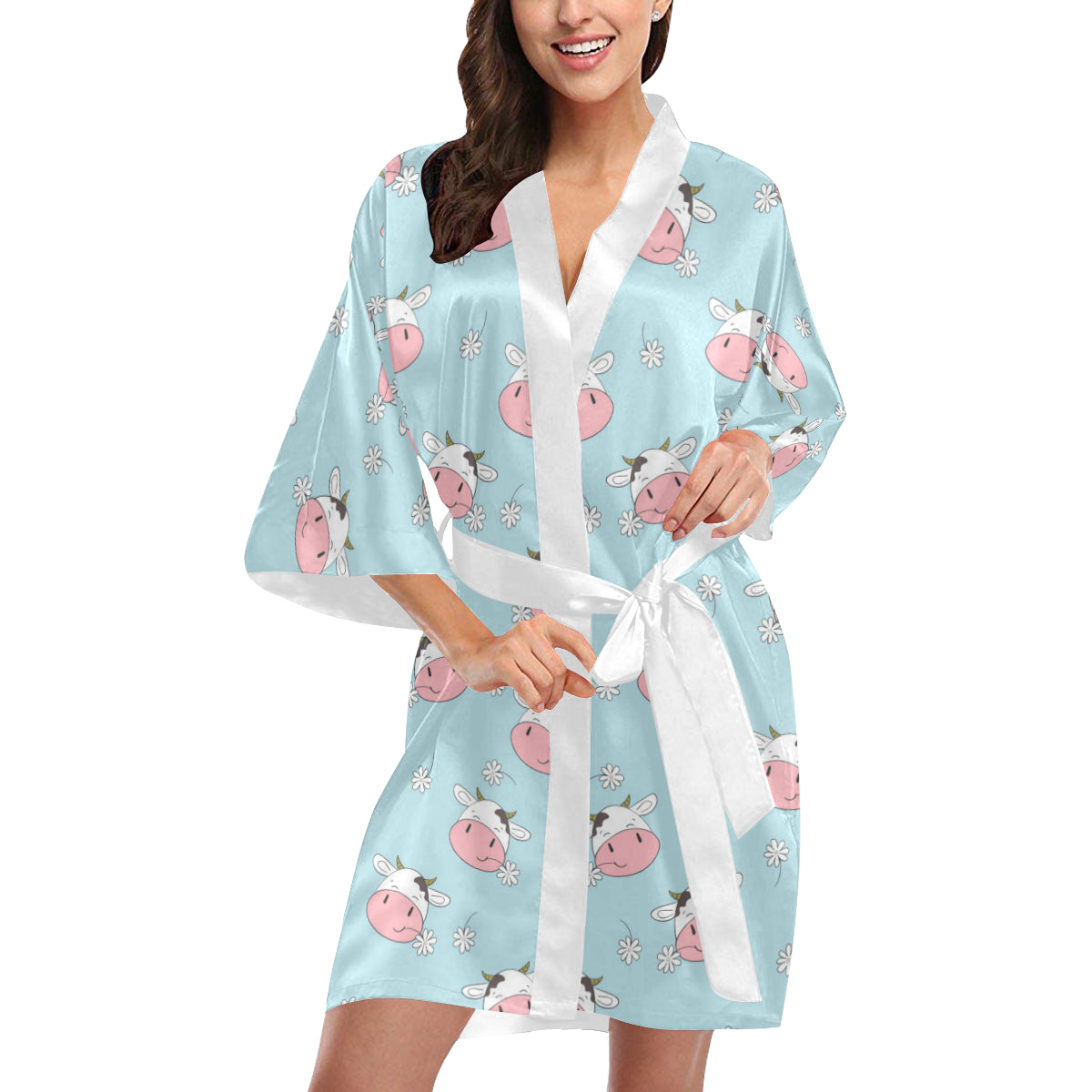 Cute cow flower pattern Women's Short Kimono Robe is a uniqued design and limited item. It made to order, hand printed, and sewn with love in our factory.