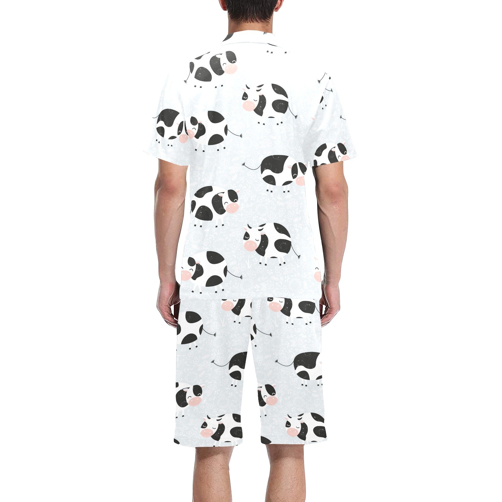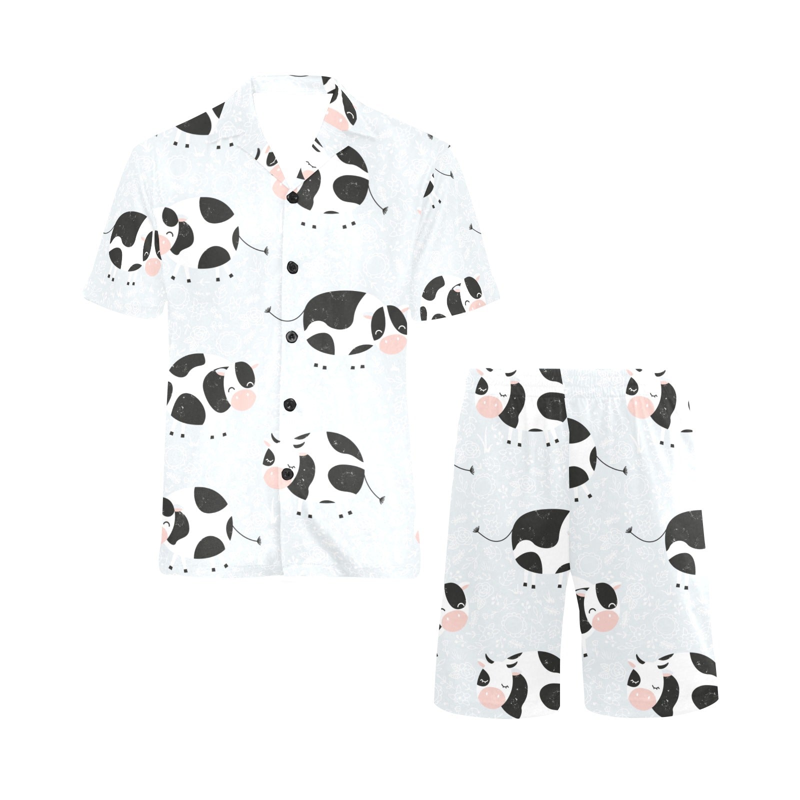 Cute cows pattern Men's V-Neck Short Pajama Set