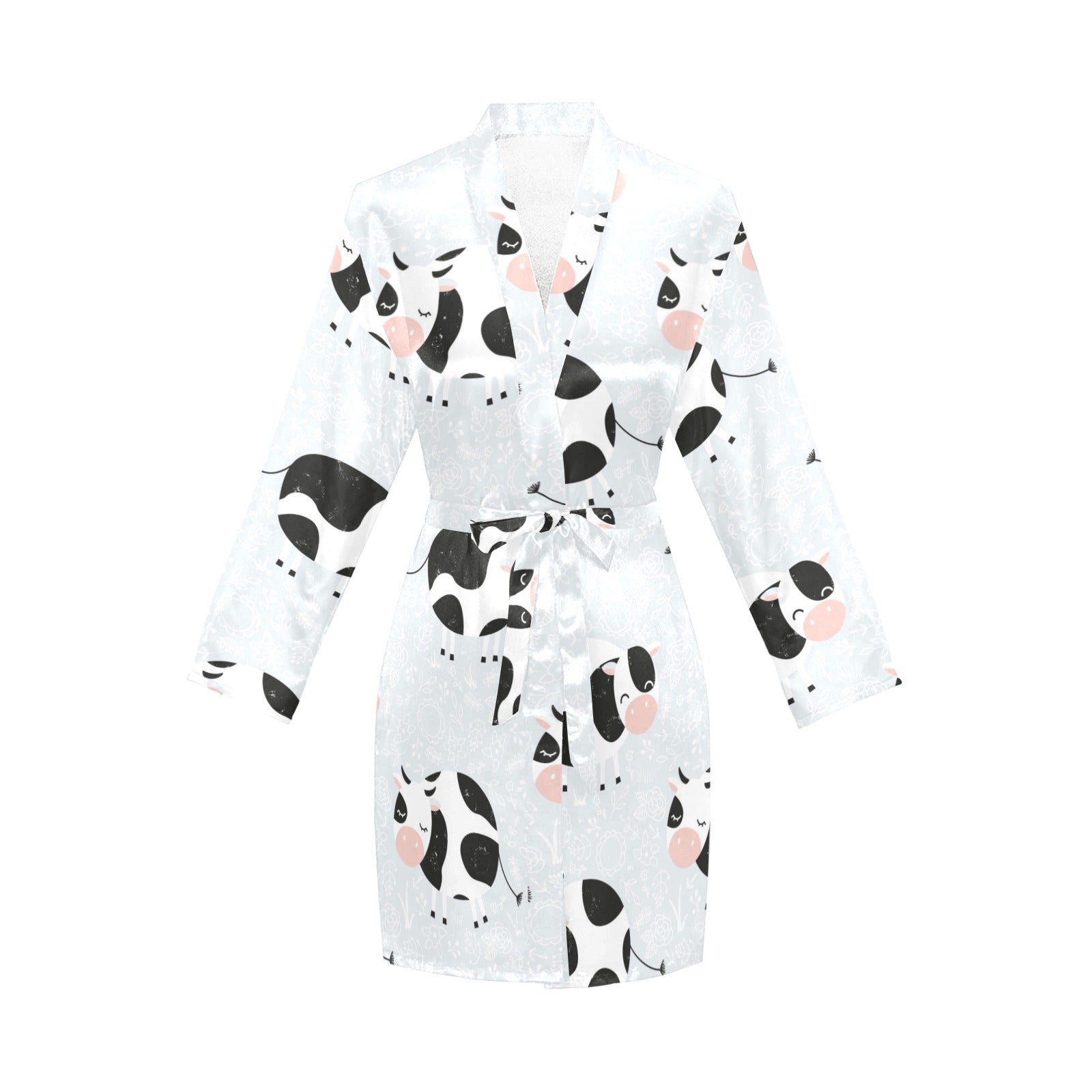 Cute cows pattern Women's Long Sleeve Belted Night Robe