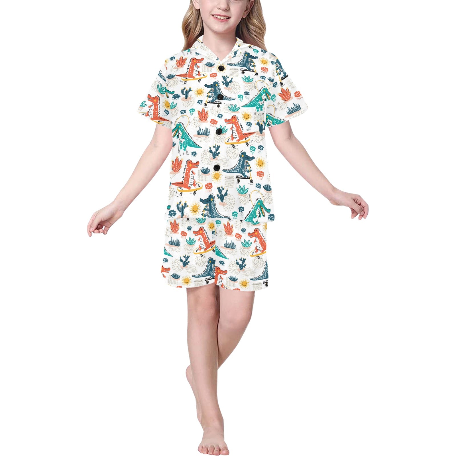 Cute Crocodile Pattern Kids' Boys' Girls' V-Neck Short Pajama Set