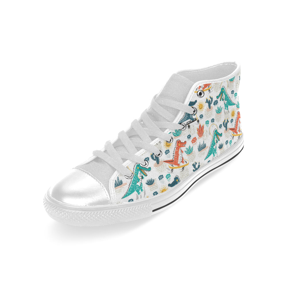 Cute Crocodile Pattern Men's High Top Canvas Shoes White