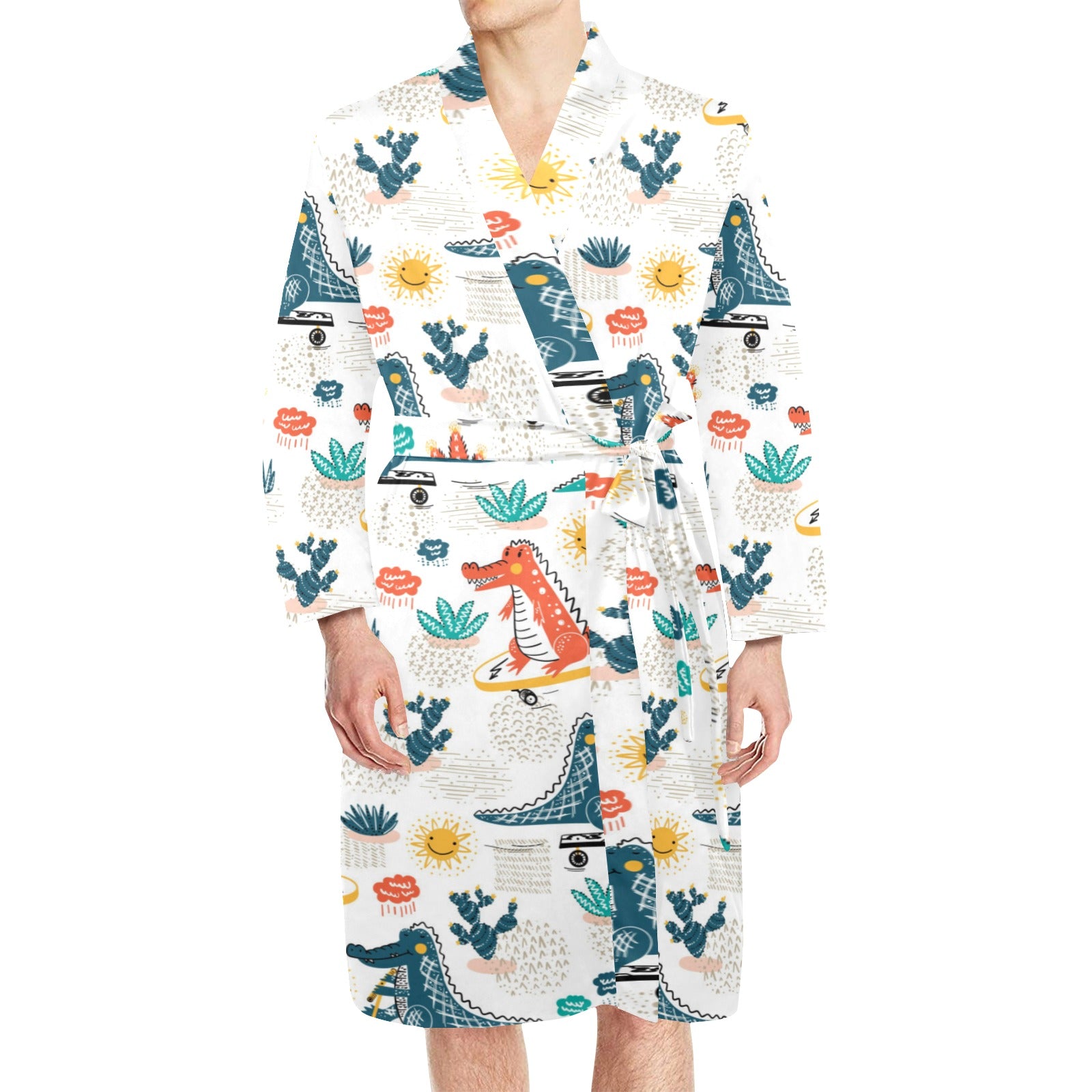 Cute Crocodile Pattern Men's Long Sleeve Belted Night Robe