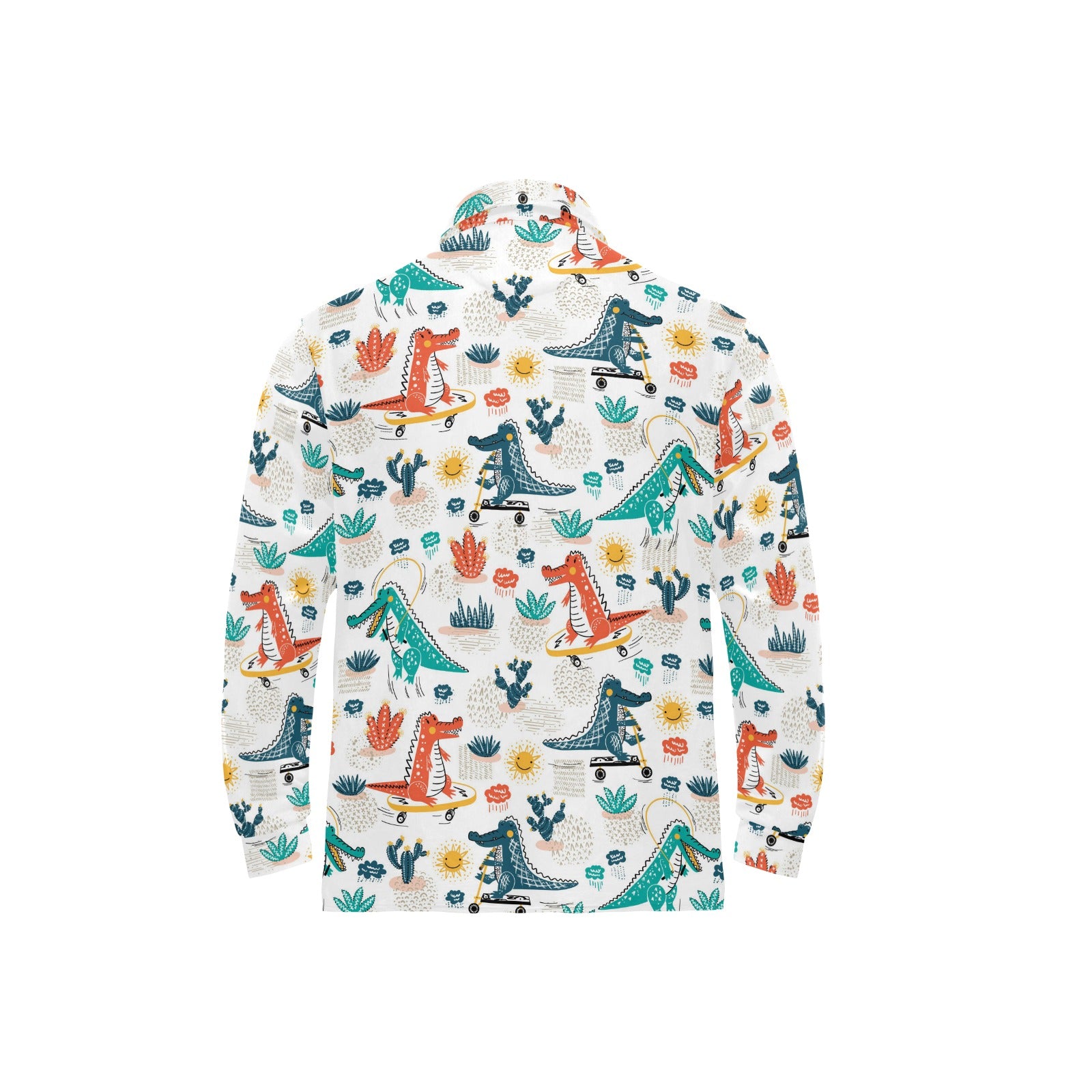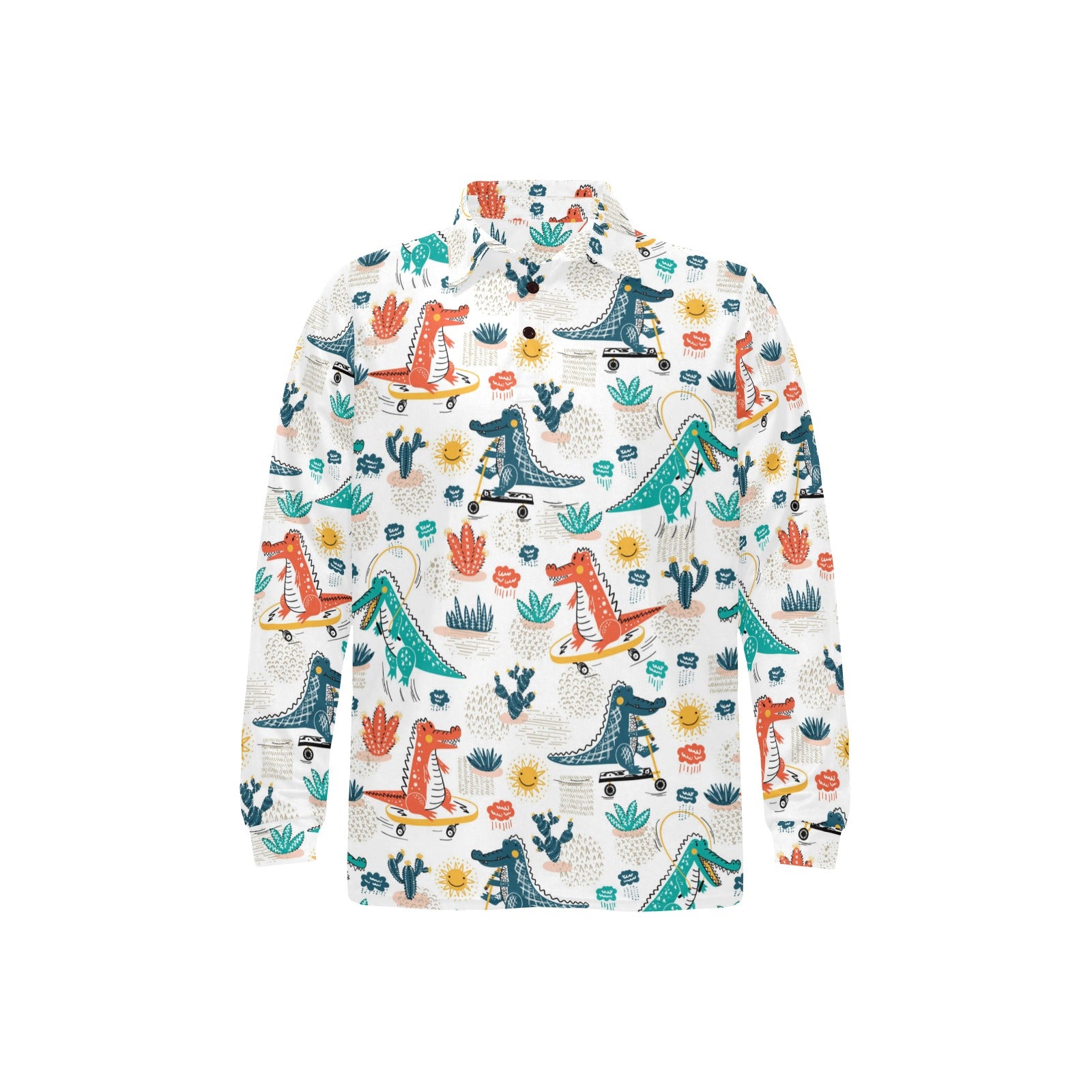 Cute Crocodile Pattern Men's Long Sleeve Polo Shirt