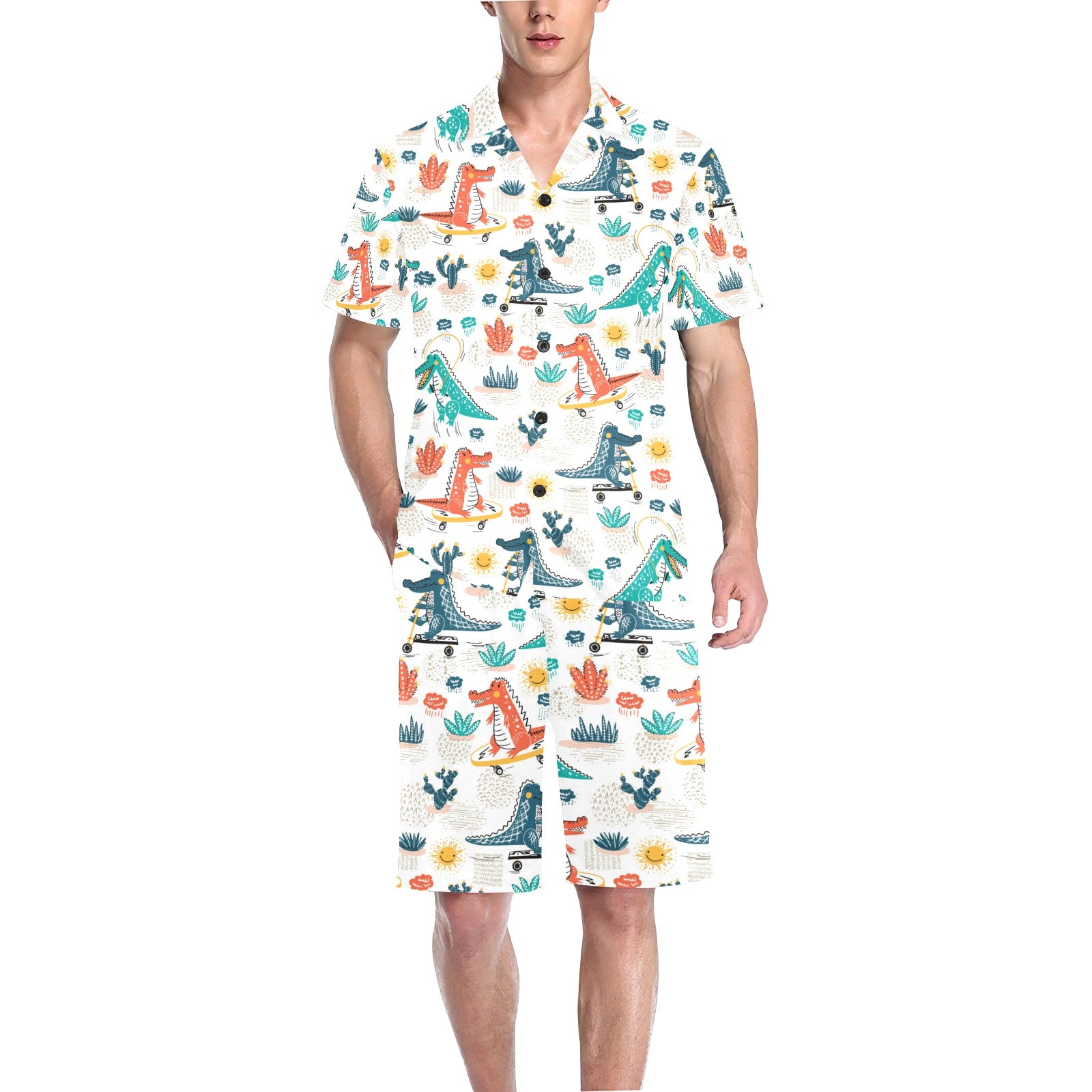 Cute Crocodile Pattern Men's V-Neck Short Pajama Set