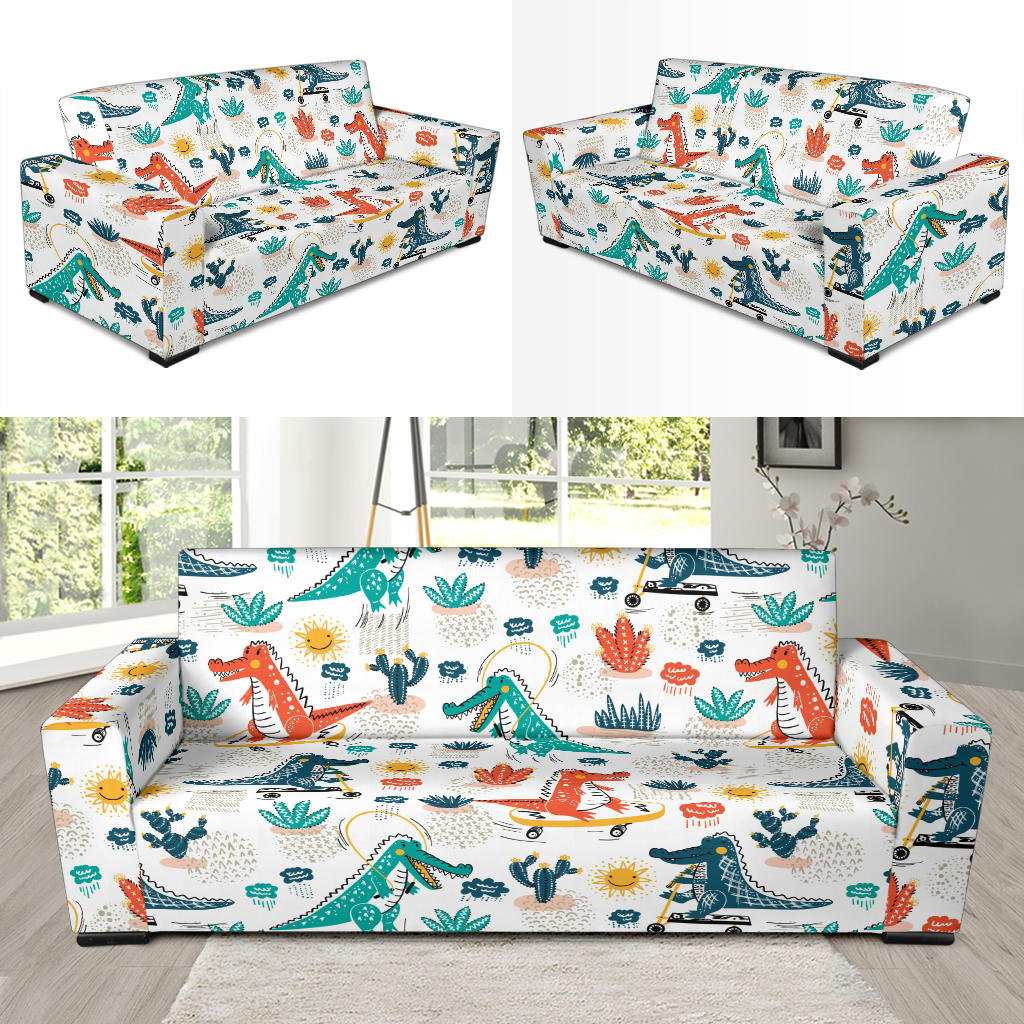 Cute Crocodile Pattern Sofa Slipcover is a uniqued design and limited item. It made to order, hand printed, and sewn with love in our factory.