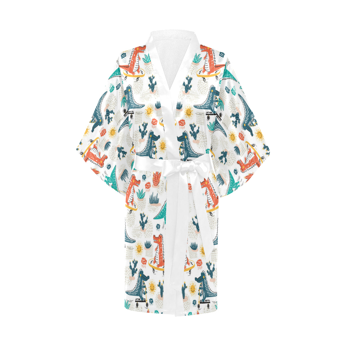 Cute Crocodile Pattern Women's Short Kimono Robe is a uniqued design and limited item. It made to order, hand printed, and sewn with love in our factory.