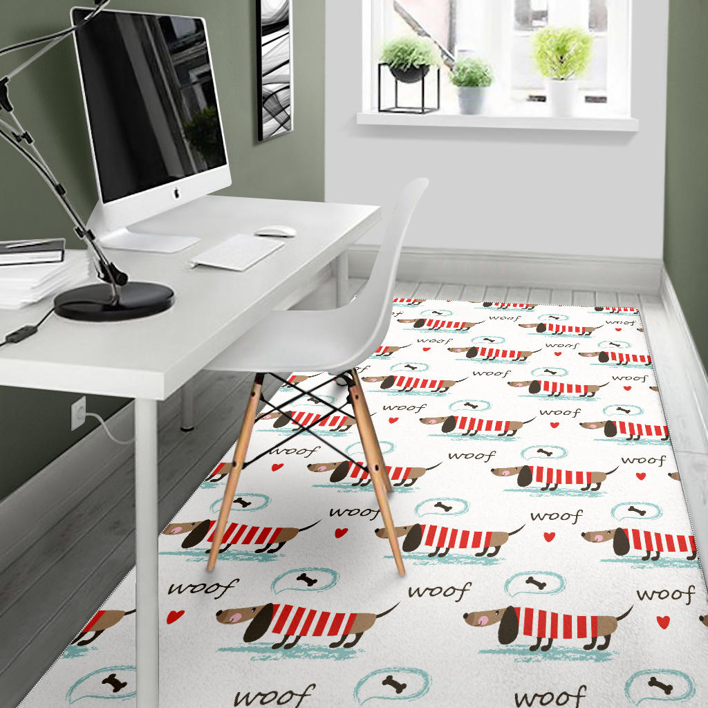 Cute dachshund bone pattern Area Rug is a uniqued design and limited item. It made to order, hand printed, and sewn with love in our factory.