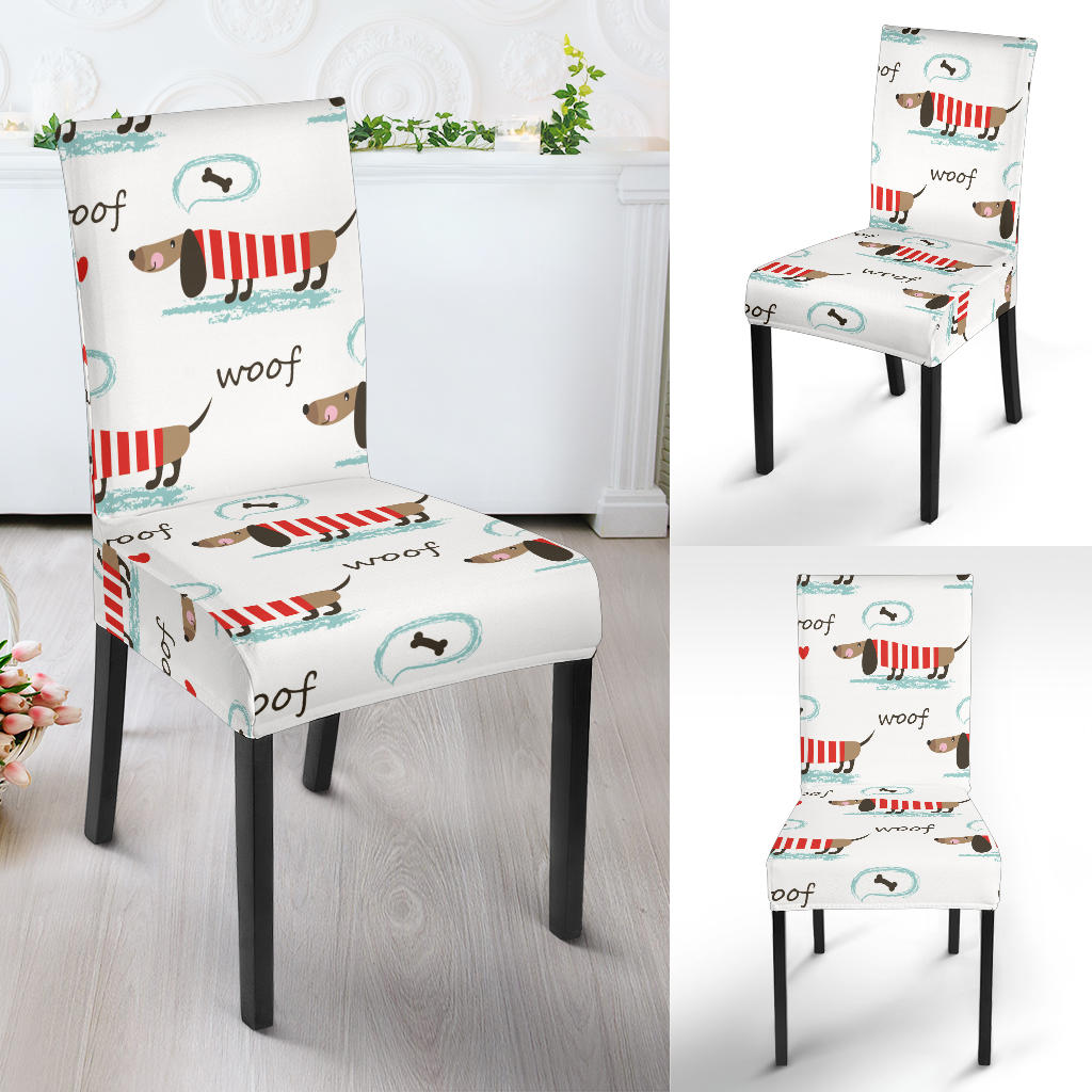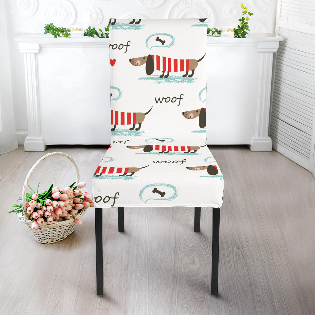 Cute Dachshund Bone Pattern Dining Chair Slipcover