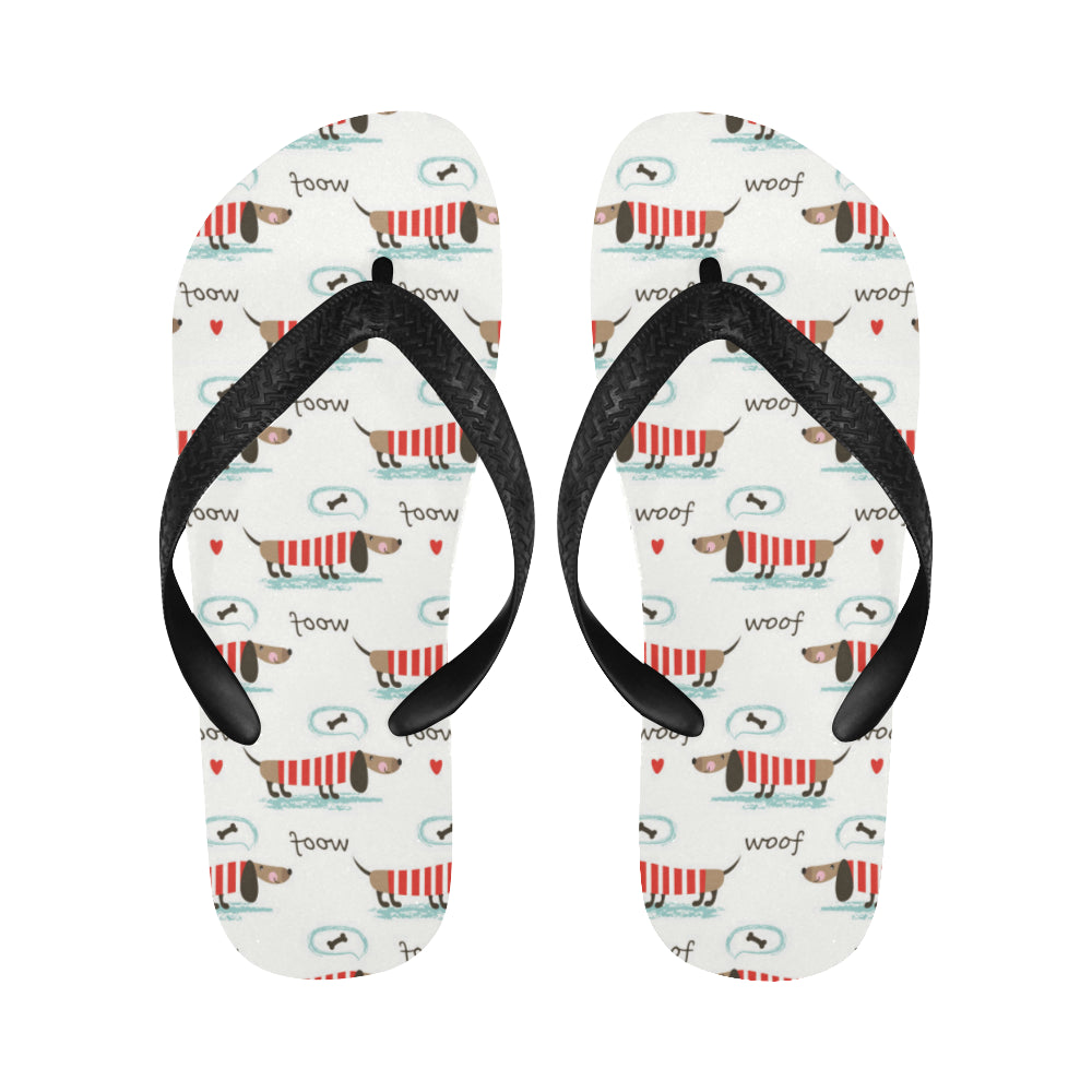 Cute dachshund bone pattern Unisex Flip Flops is a uniqued design and limited item. It made to order, hand printed, and sewn with love in our factory.