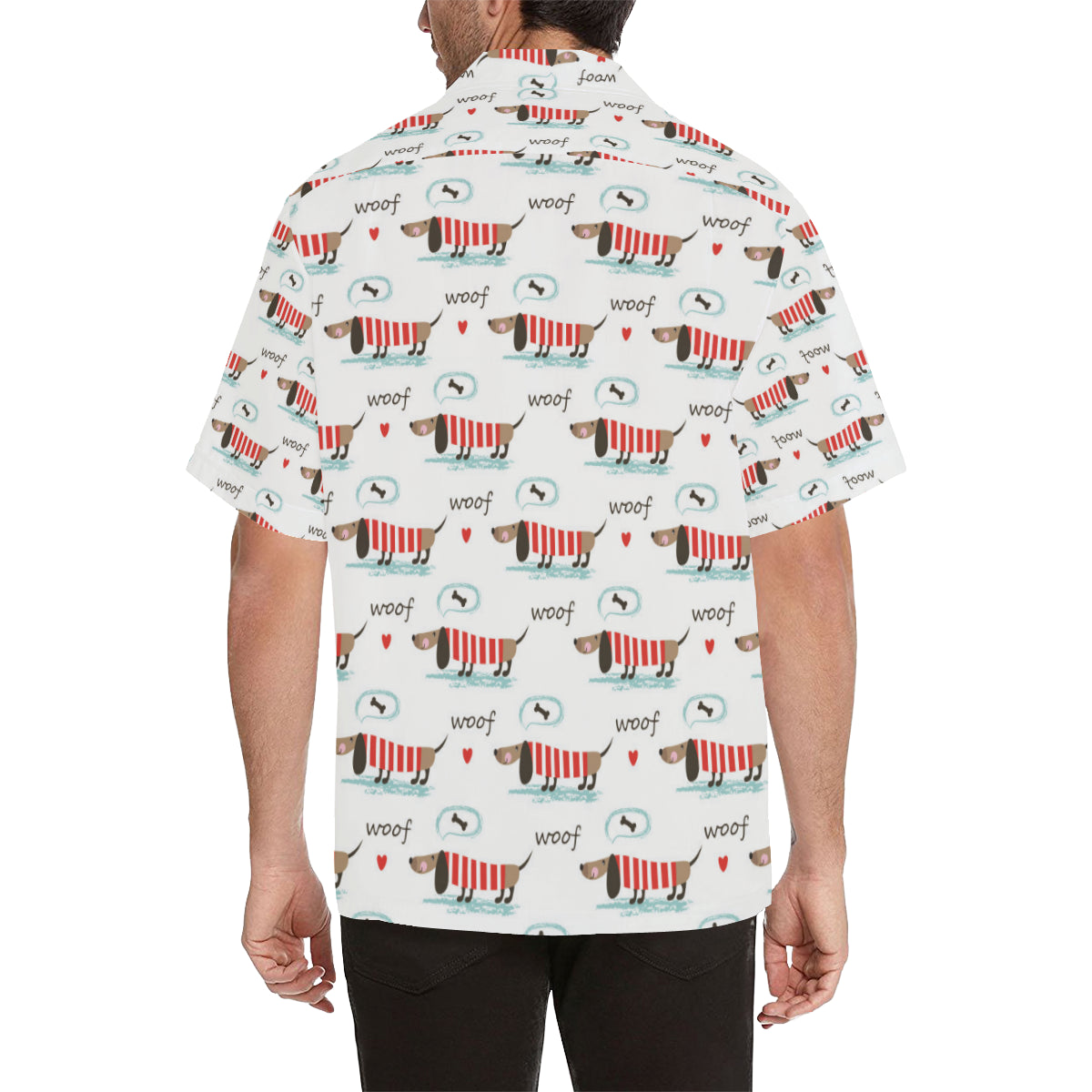 Cute dachshund bone pattern Men's All Over Print Hawaiian Shirt is a uniqued design and limited item. It made to order, hand printed, and sewn with love in our factory.
