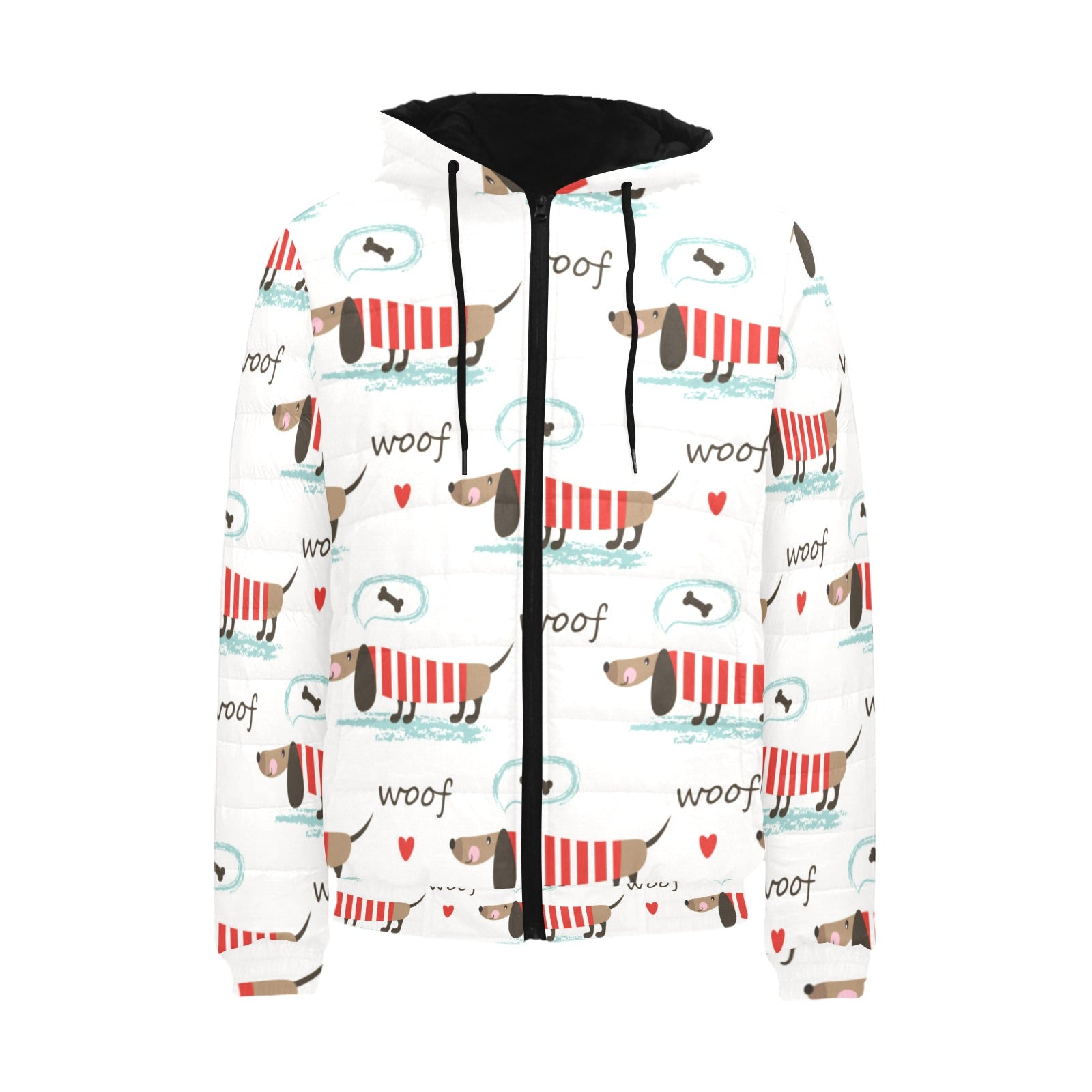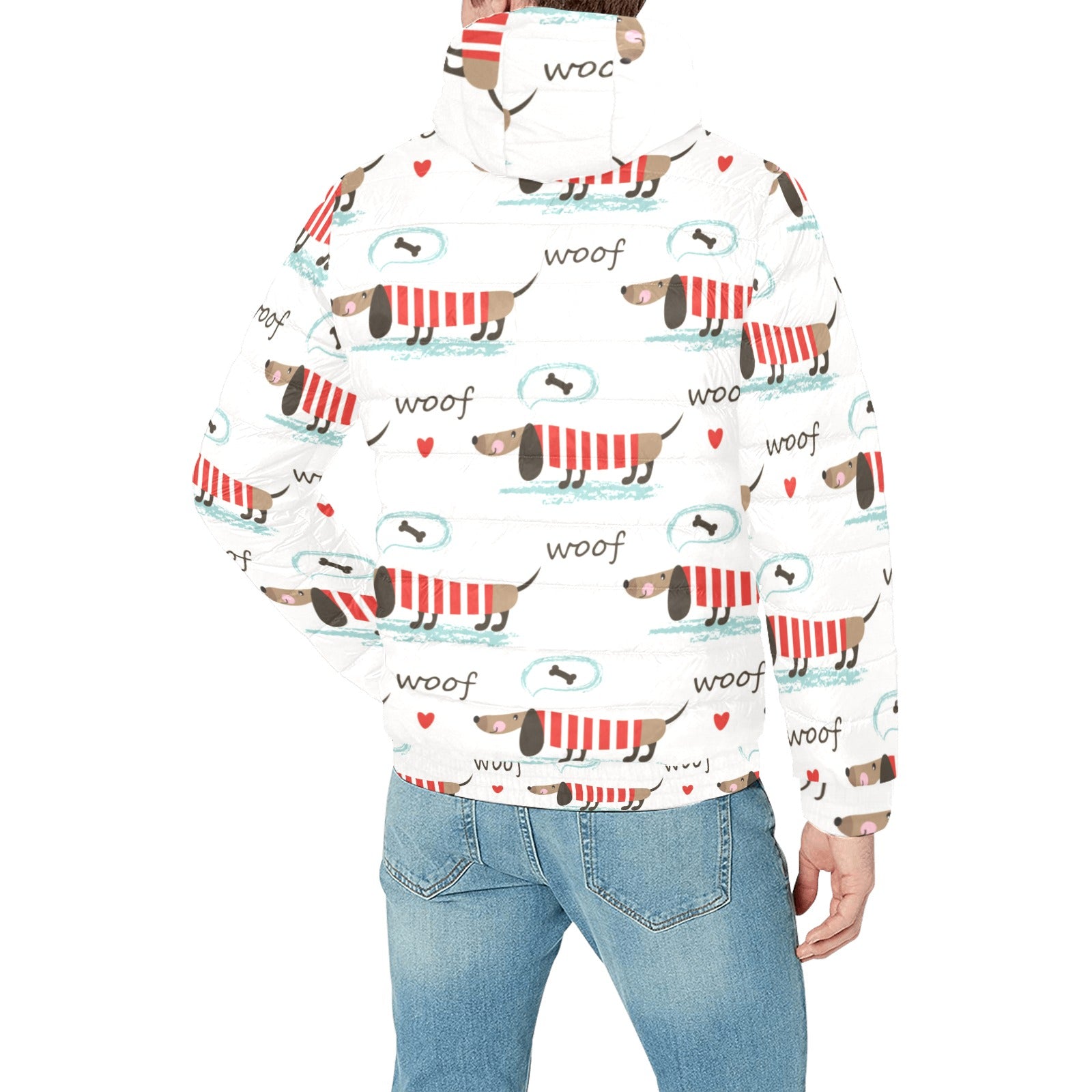 Cute dachshund bone pattern Men's Padded Hooded Jacket