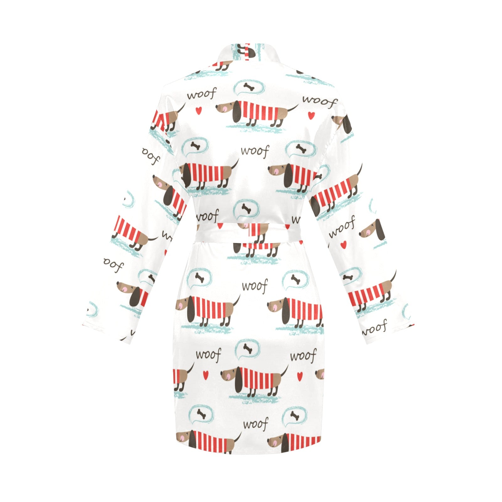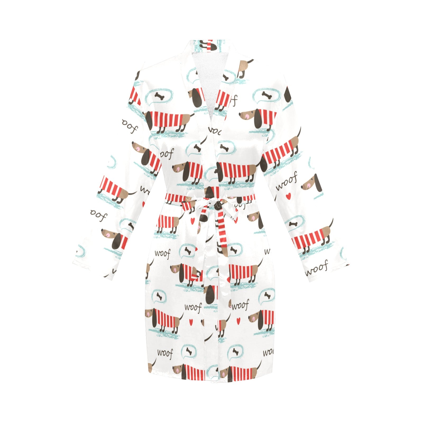 Cute dachshund bone pattern Women's Long Sleeve Belted Night Robe