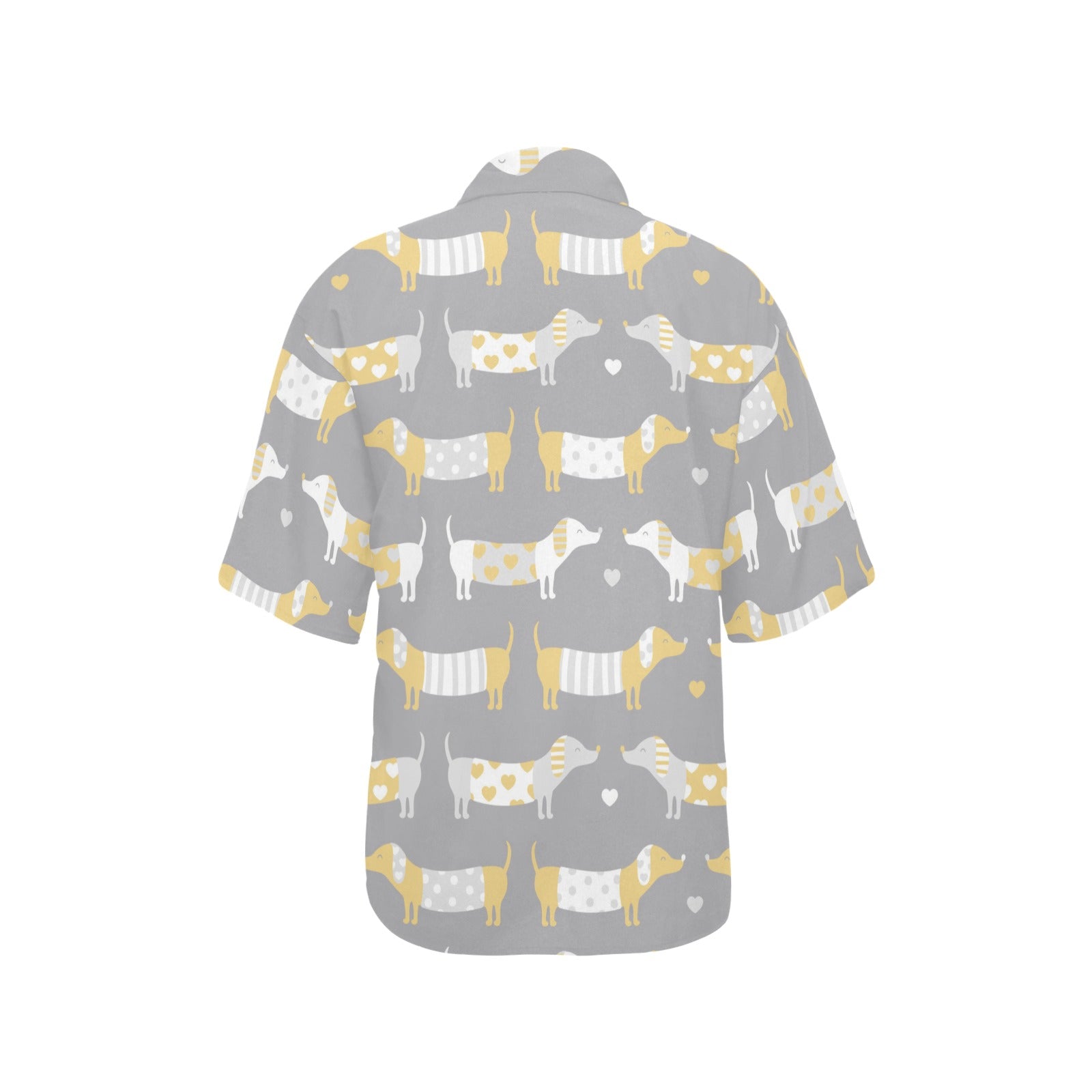 Cute dachshund dog pattern Women's All Over Print Hawaiian Shirt