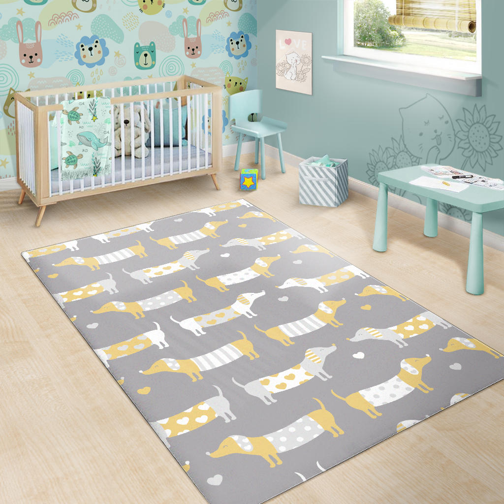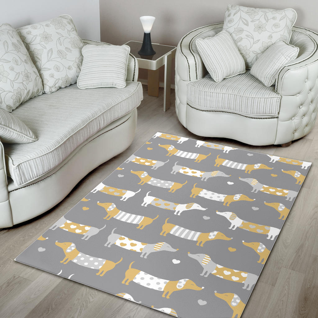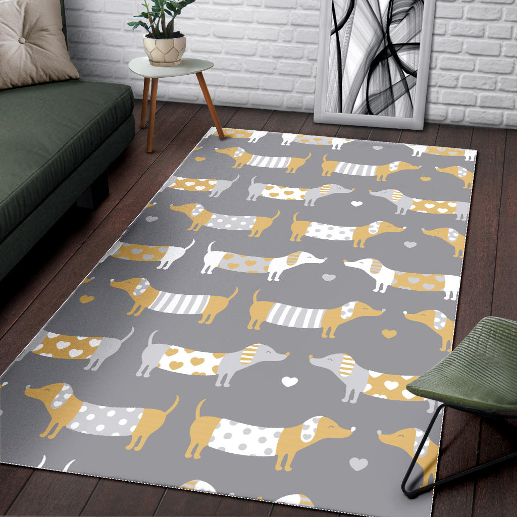 Cute dachshund dog pattern Area Rug is a uniqued design and limited item. It made to order, hand printed, and sewn with love in our factory.