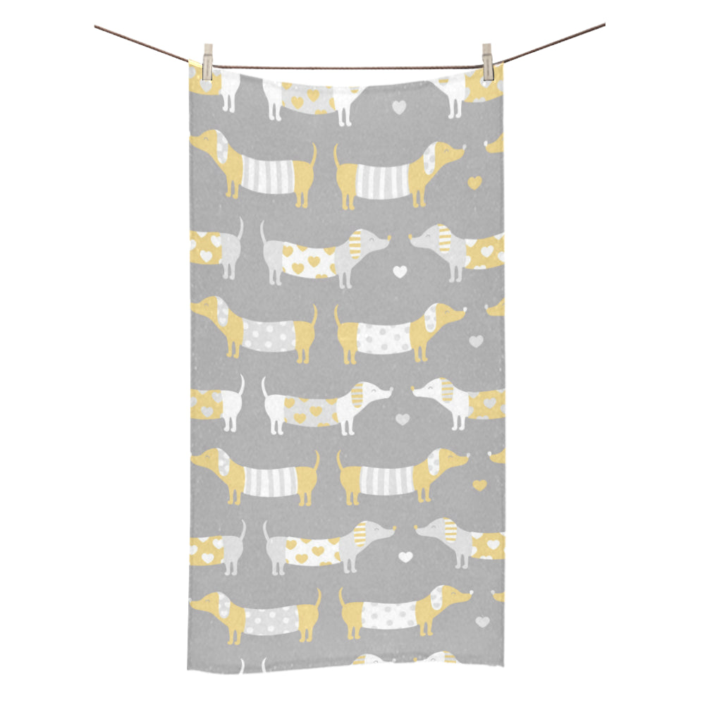 Cute dachshund dog pattern Bath Towel 30"x56" is a uniqued design and limited item. It made to order, hand printed, and sewn with love in our factory.