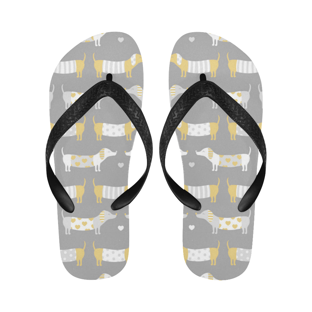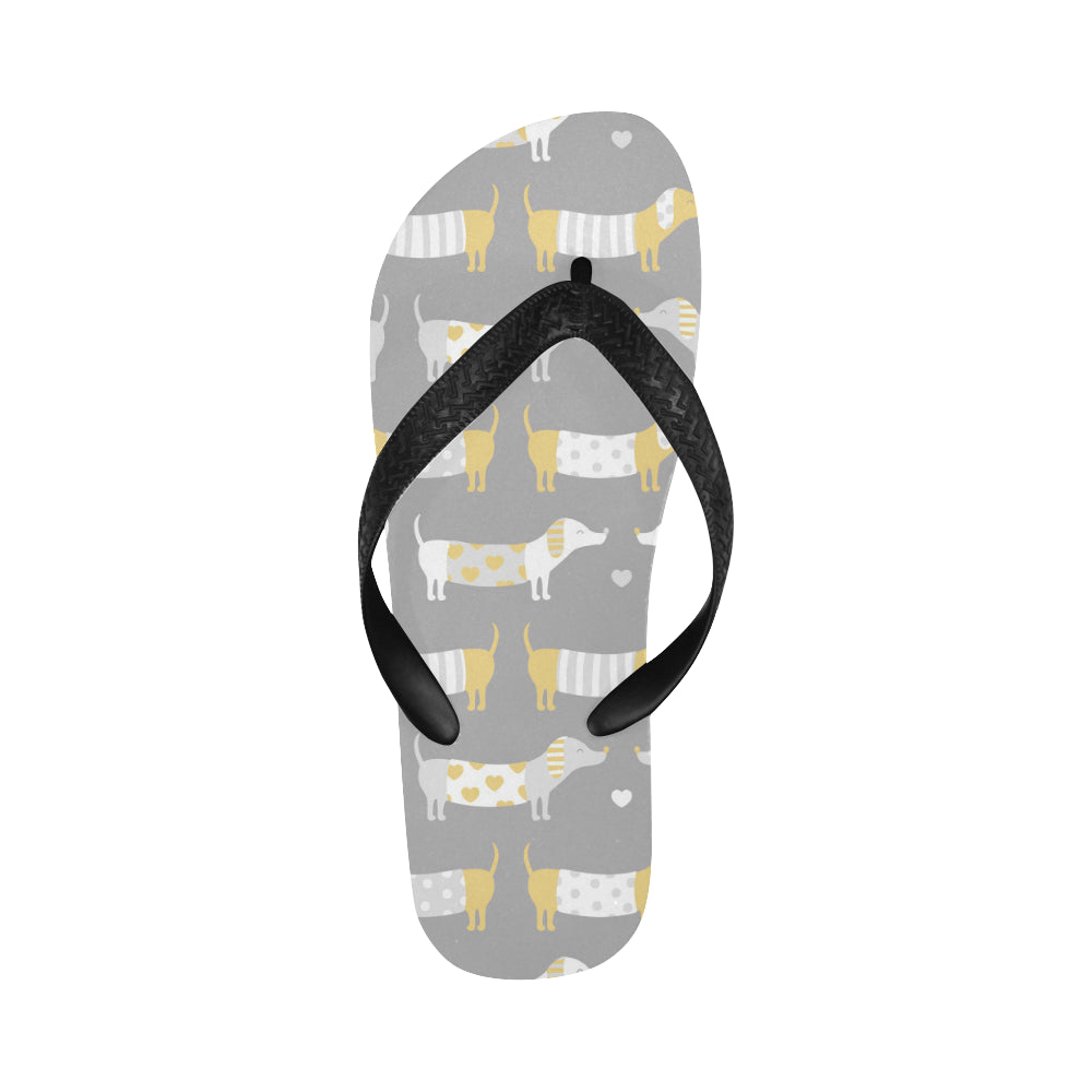 Cute dachshund dog pattern Unisex Flip Flops is a uniqued design and limited item. It made to order, hand printed, and sewn with love in our factory.