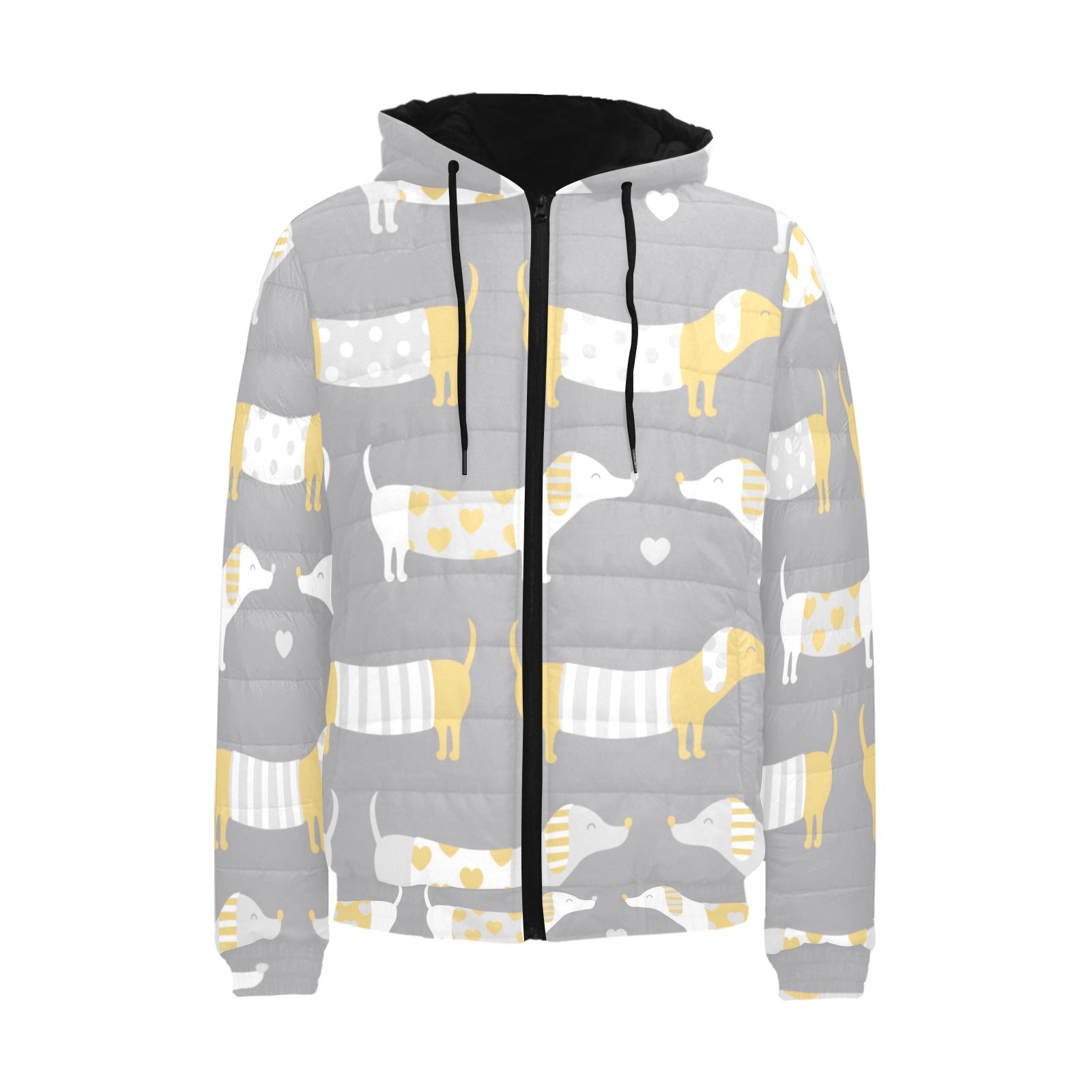 Cute dachshund dog pattern Men's Padded Hooded Jacket