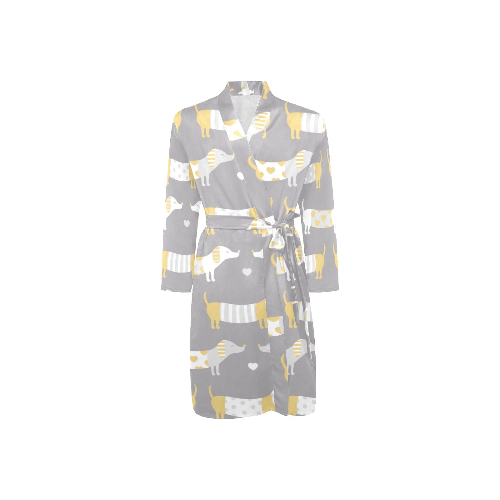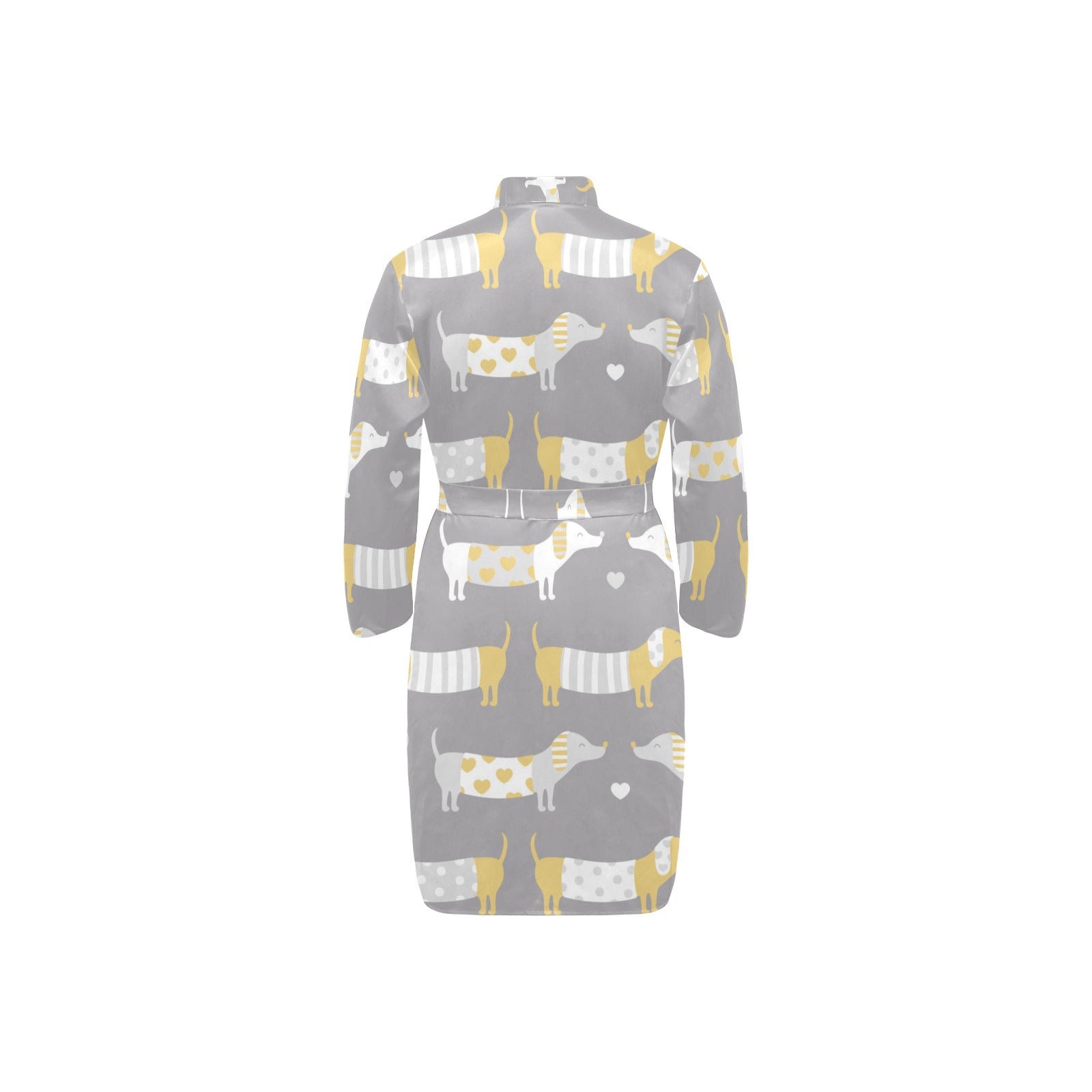 Cute dachshund dog pattern Men's Long Sleeve Belted Night Robe