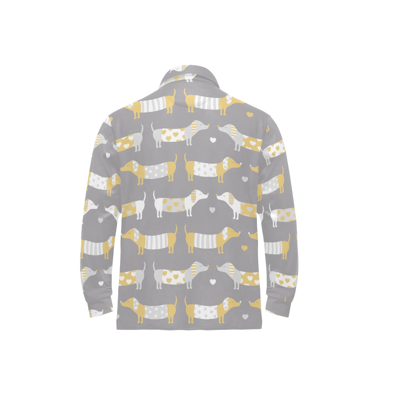 Cute dachshund dog pattern Men's Long Sleeve Polo Shirt