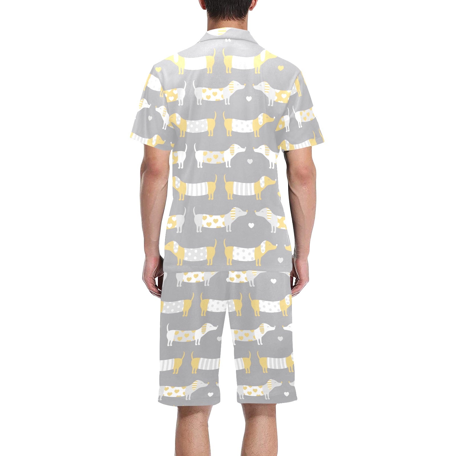 Cute dachshund dog pattern Men's V-Neck Short Pajama Set