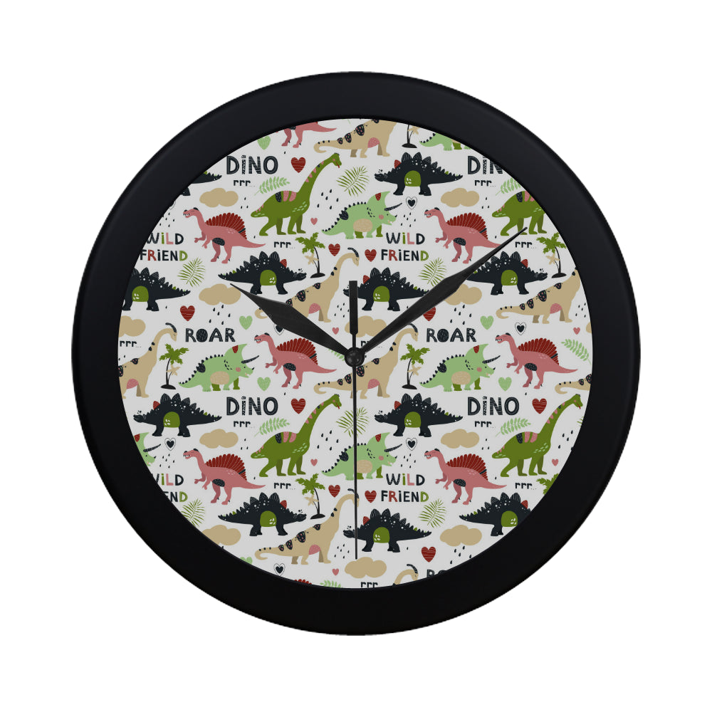 Cute dinosaurs pattern Elegant Black Wall Clock
