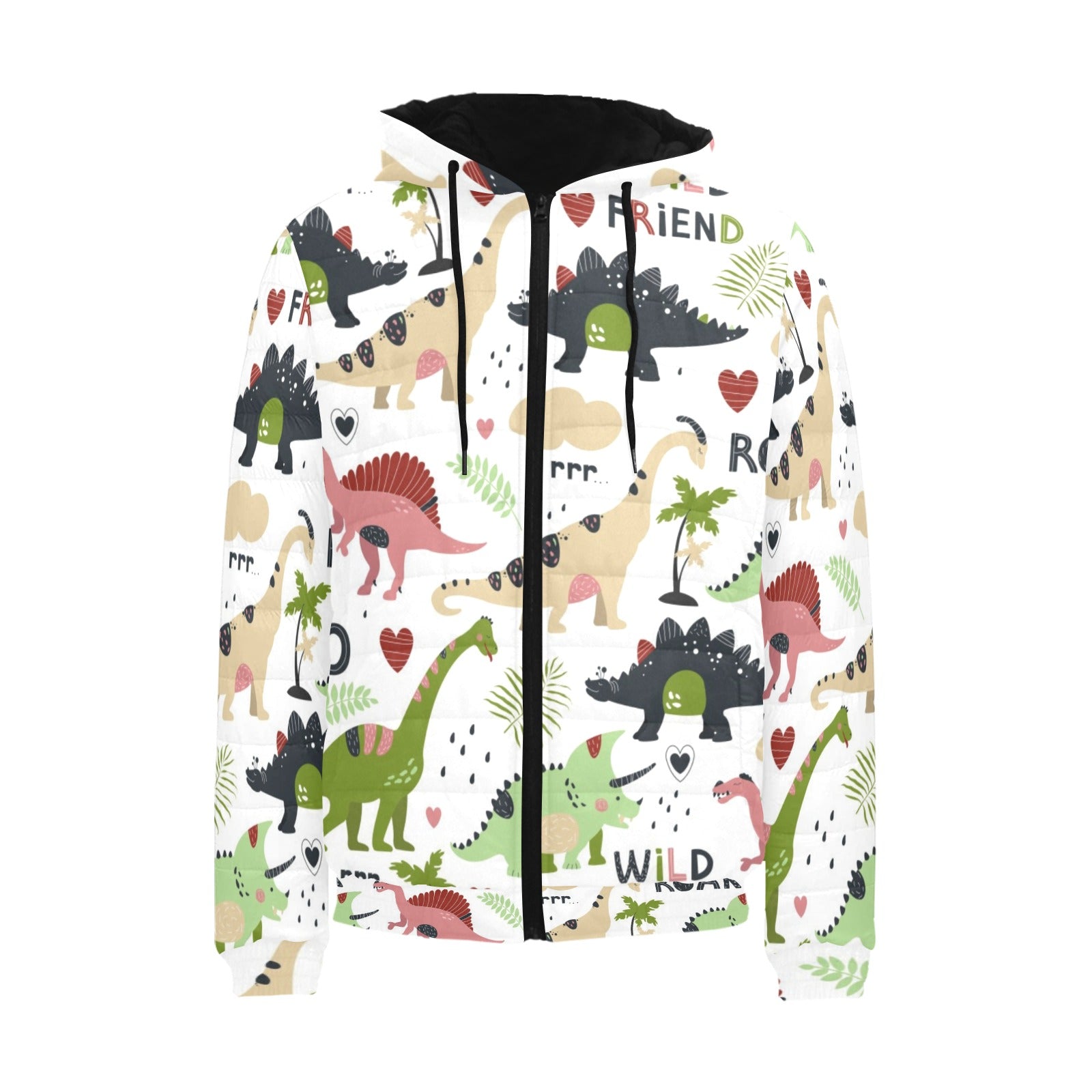 Cute dinosaurs pattern Men's Padded Hooded Jacket