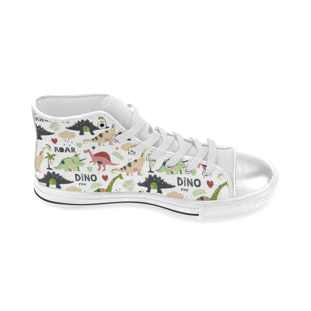Cute dinosaurs pattern Women's High Top Canvas Shoes White