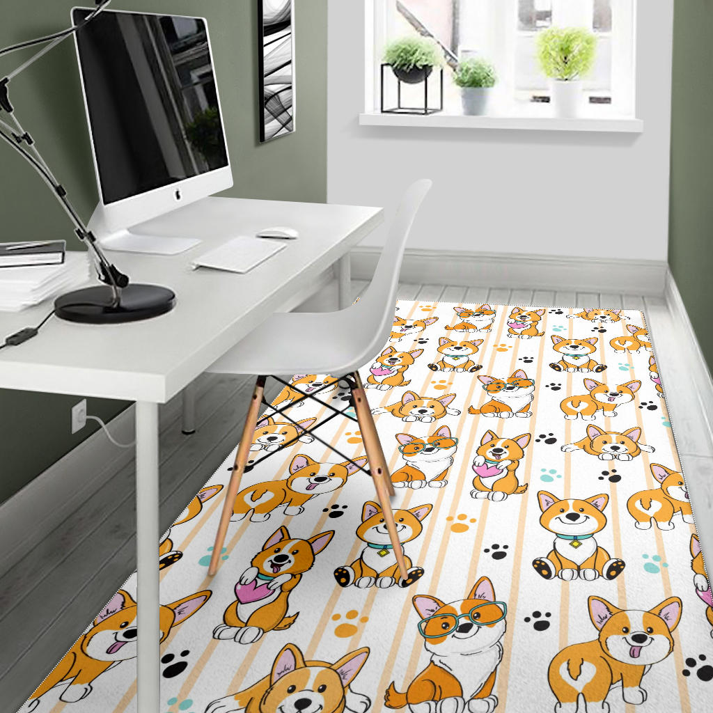Cute dog corgi striped background pattern Area Rug is a uniqued design and limited item. It made to order, hand printed, and sewn with love in our factory.