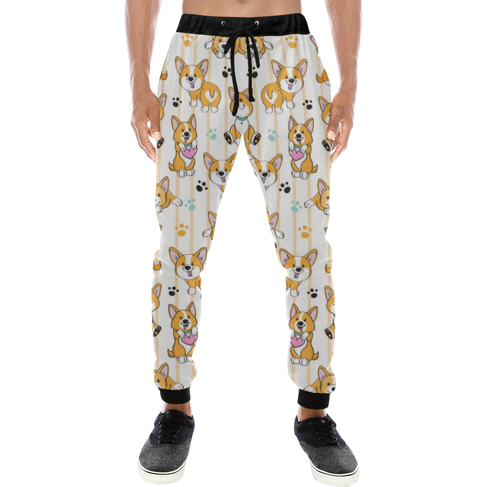 Cute dog corgi striped background pattern Unisex Casual Sweatpants