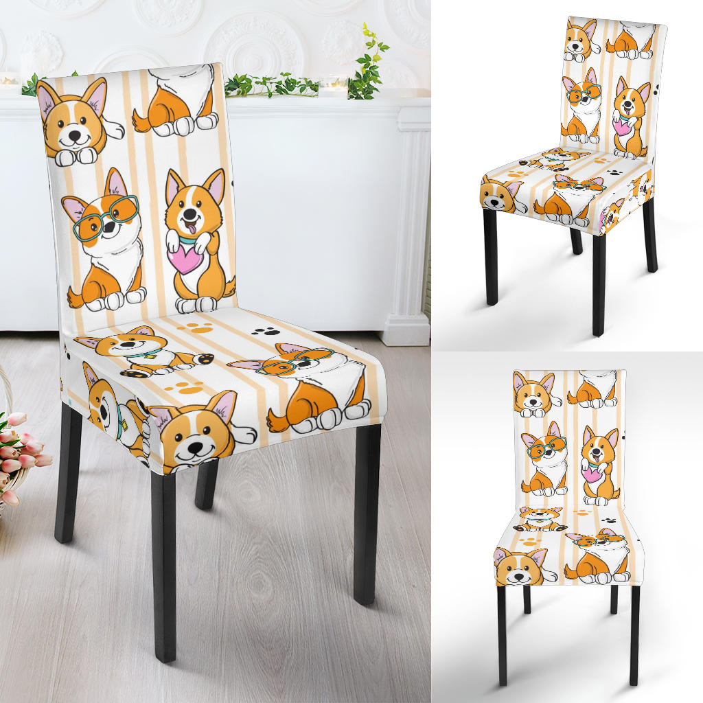 Cute Dog Corgi Striped Background Pattern Dining Chair Slipcover