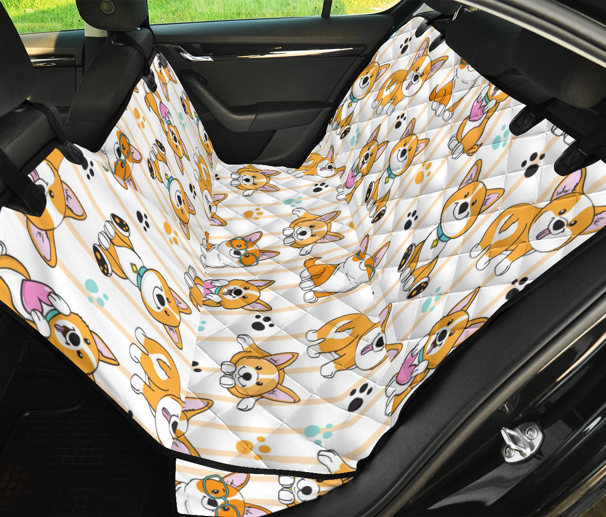 Cute Dog Corgi Striped Background Pattern Dog Car Seat Covers