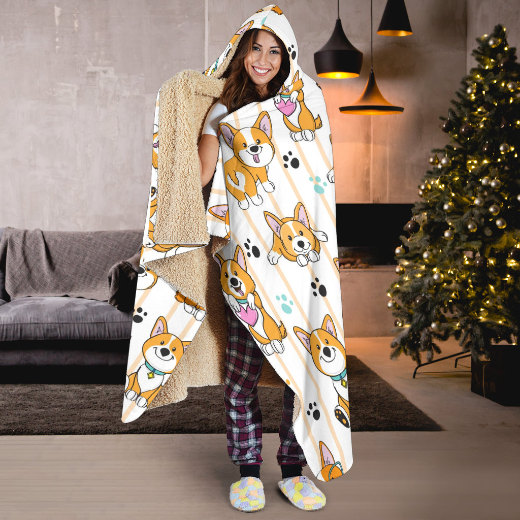 Cute dog corgi striped background pattern Hooded Blanket are custom-made-to-order and handcrafted to the highest quality standards.